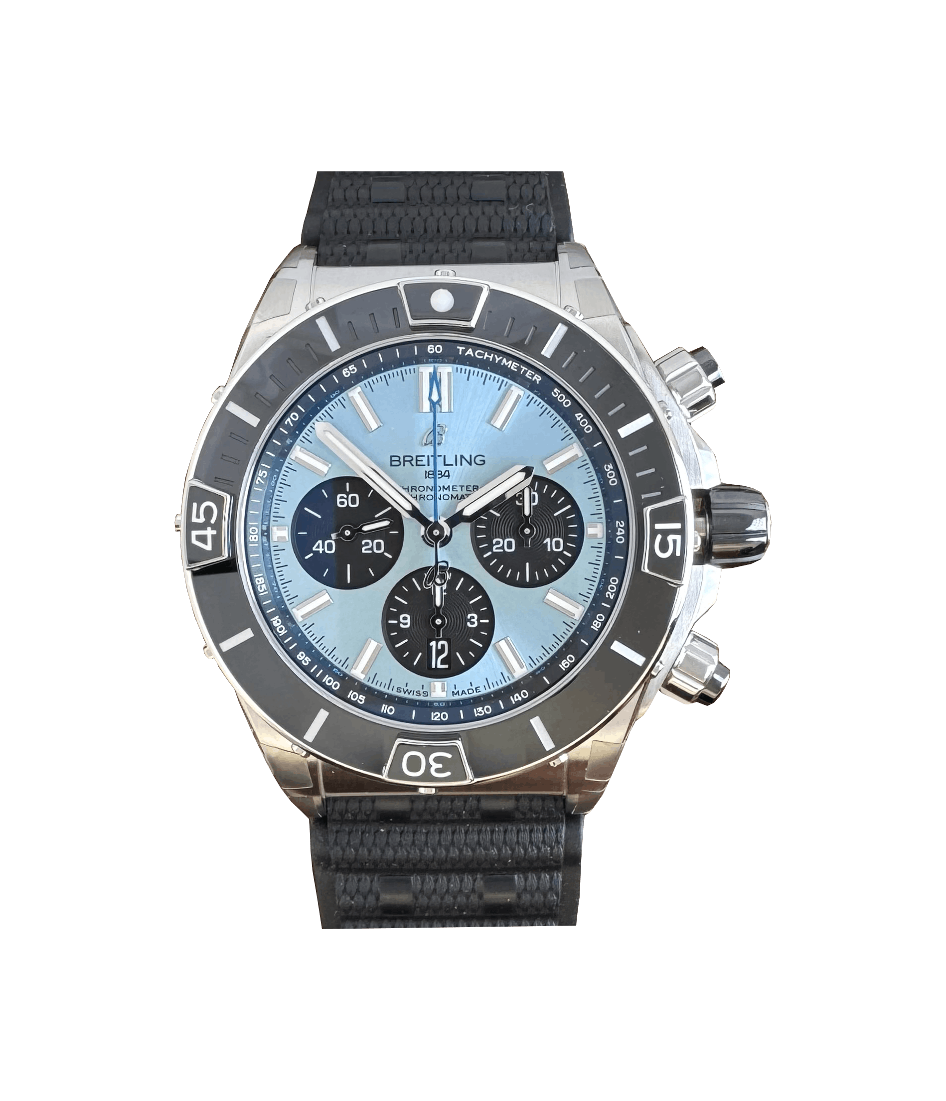 Breitling PB0136251C1S1 Chronomat B01 44 Stainless Steel - Platinum / Ice Blue / Rubber Rouleaux