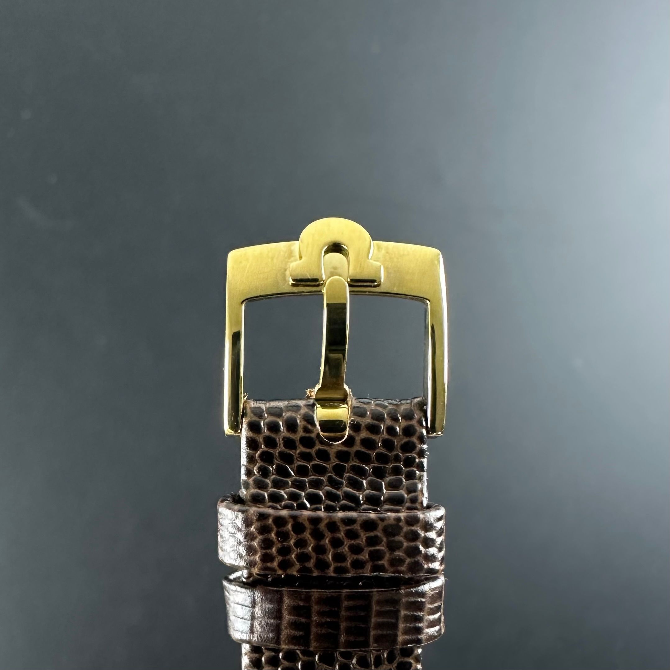 Strap: A brown calf leather strap with lizard grain. (Fits a 12 to 20cm wrist)