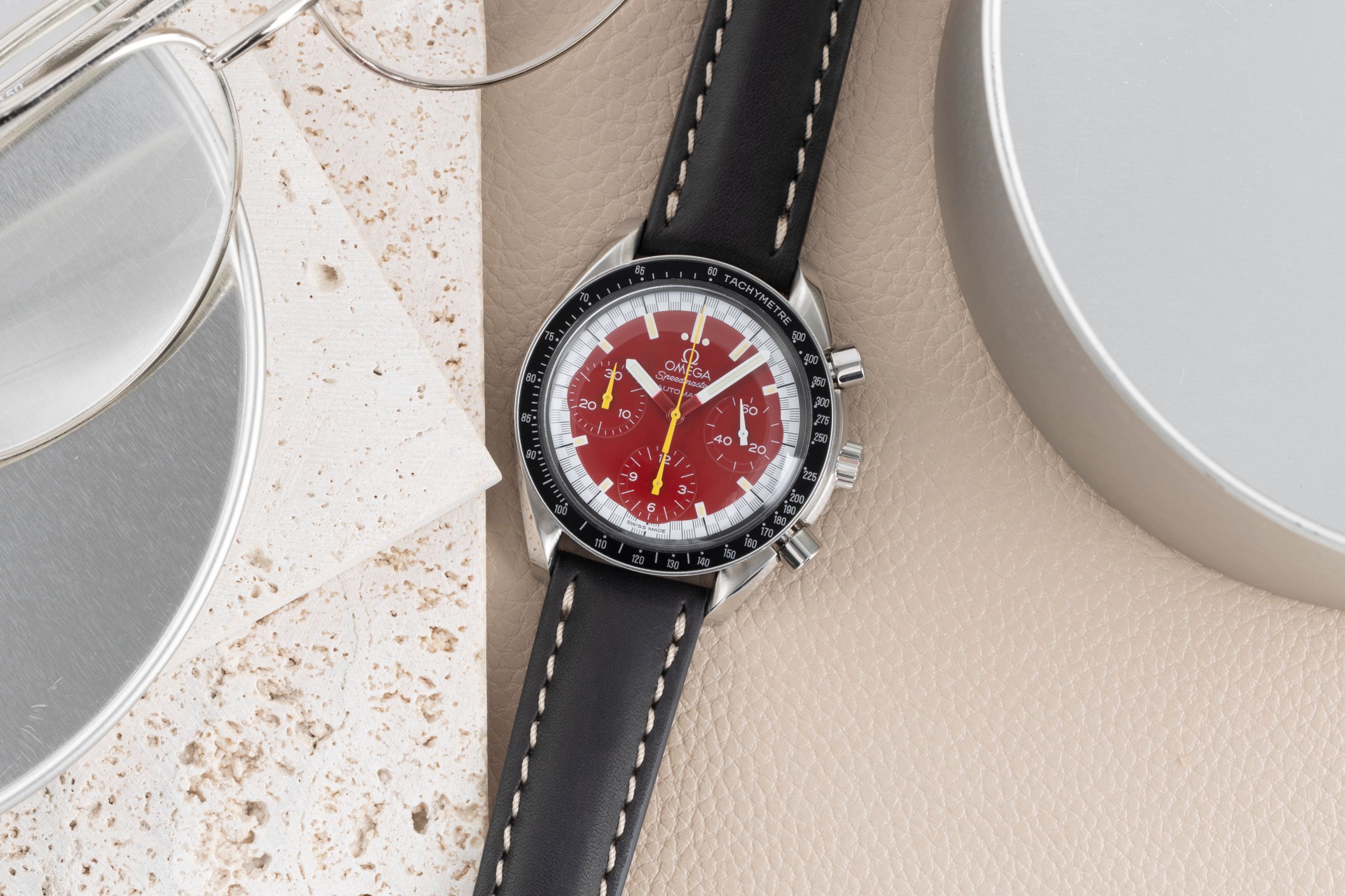 Alternative title: Omega 3810.61.41 - Speedmaster Reduced Stainless Steel / Red / Strap / Schumacher; Omega Speedmaster Reduced Schumacher Automatik Stahl Ref. 3810.61.41 Klassiker [2503899]