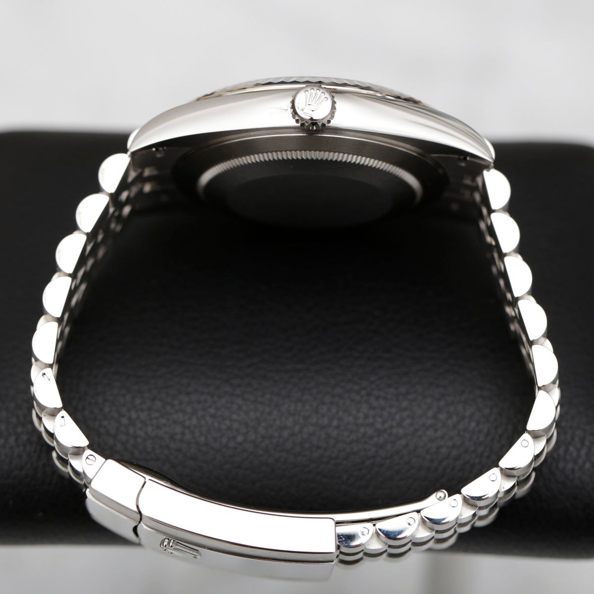 Rolex Datejust 41 in the attractive fluted bezel, jubilee bracelet and Wimbledon dial configuration.