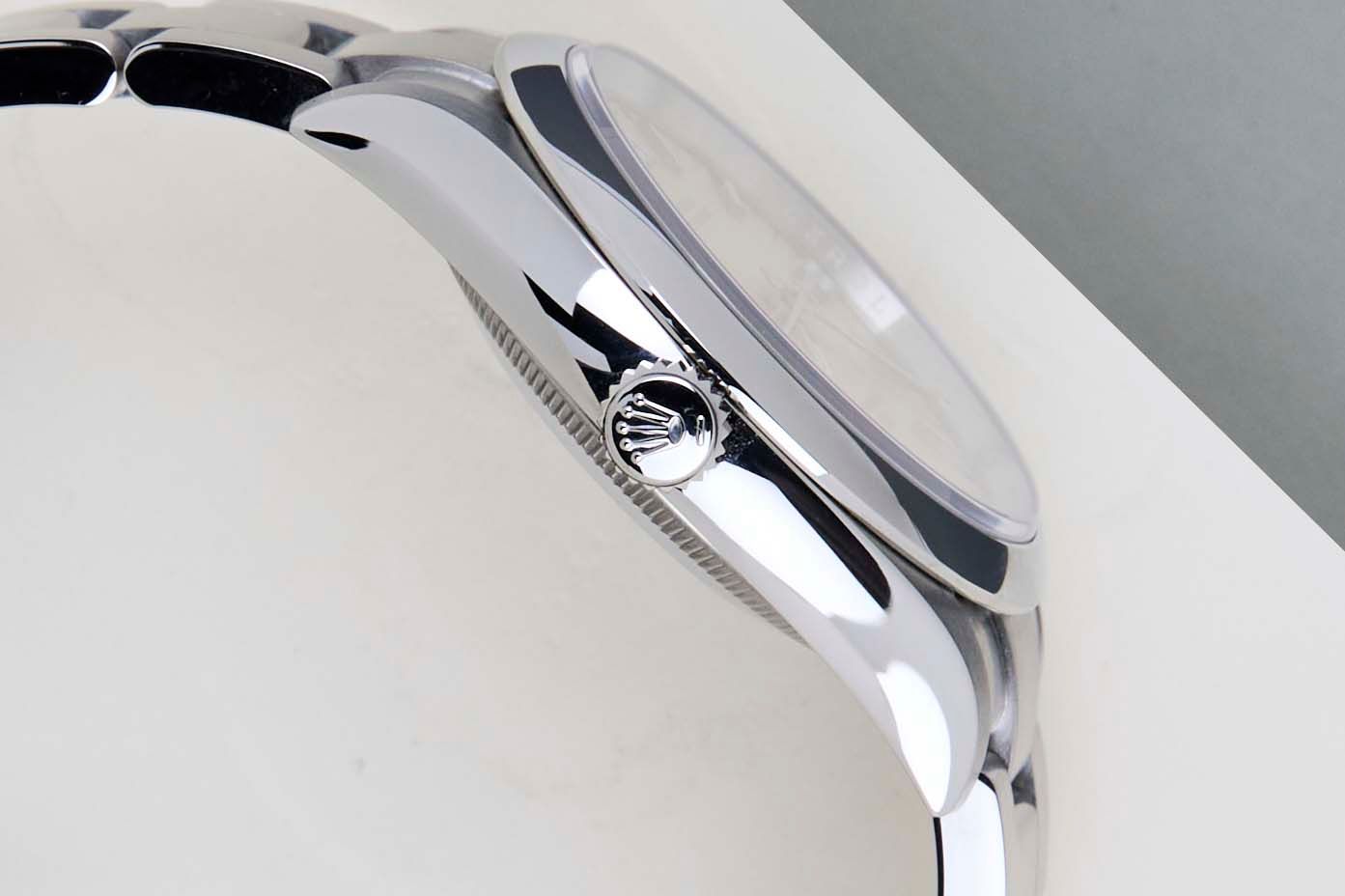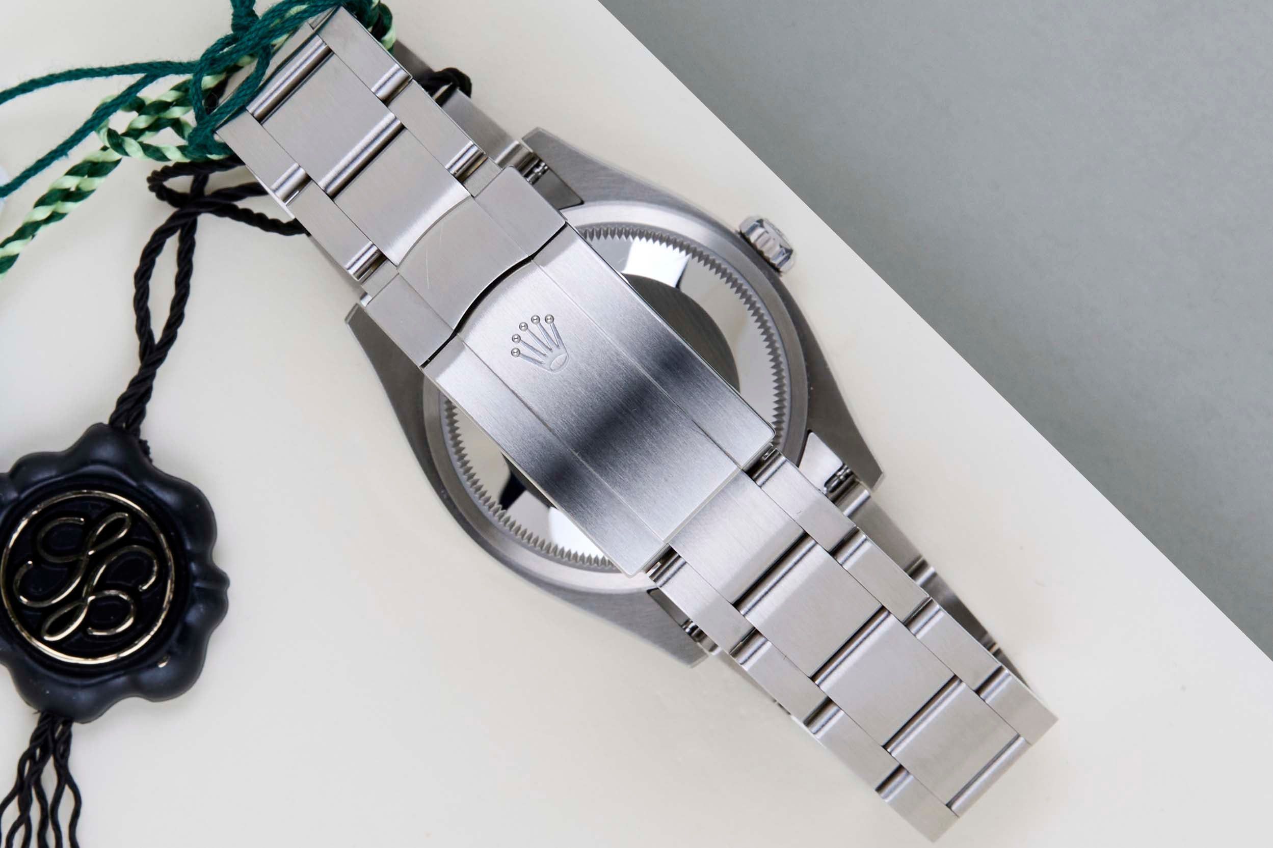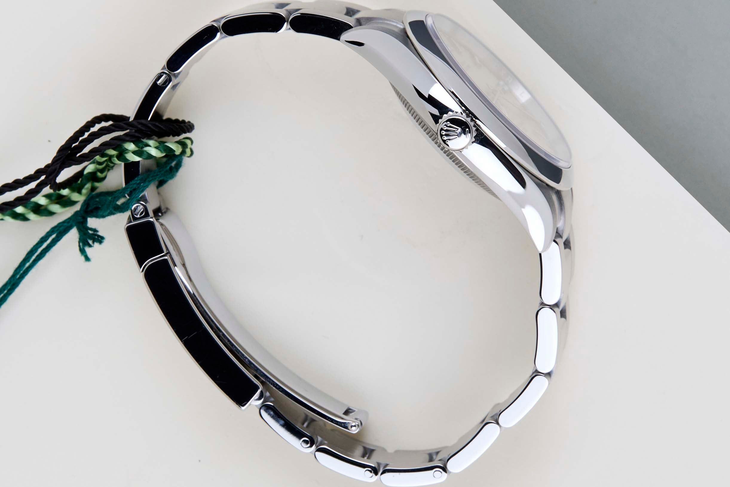 Dit geweldige Rolex Oyster Perpetual is in Mint Conditie en wordt geleverd met de originele Rolex Garantiekaart en Doos. Bovendien heeft het horloge nog steeds Wereldwijde Rolex Garantie tot augustus 2030.