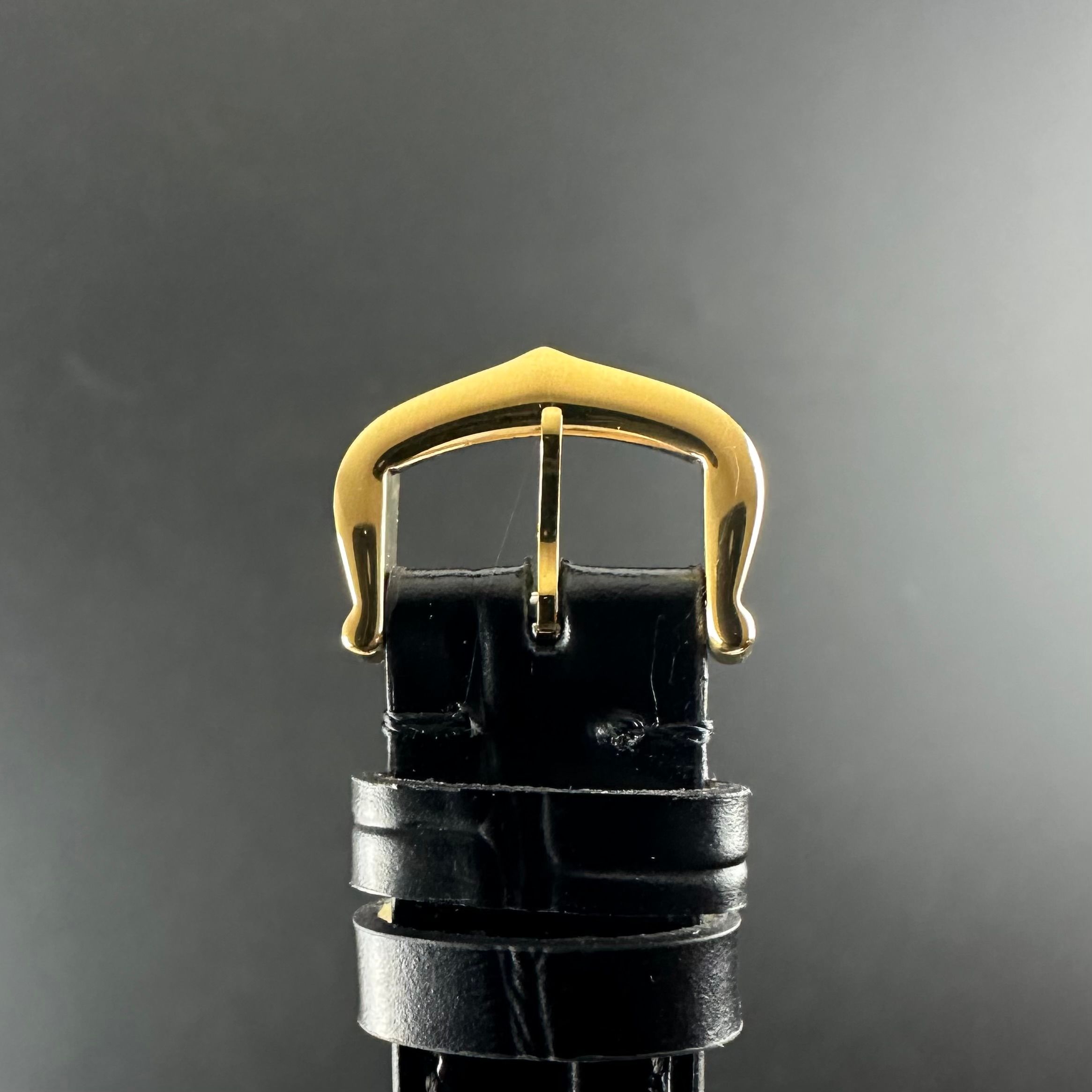 Strap: A black calf leather strap with alligator grain. (Fits a 11 to 19cm wrist)
