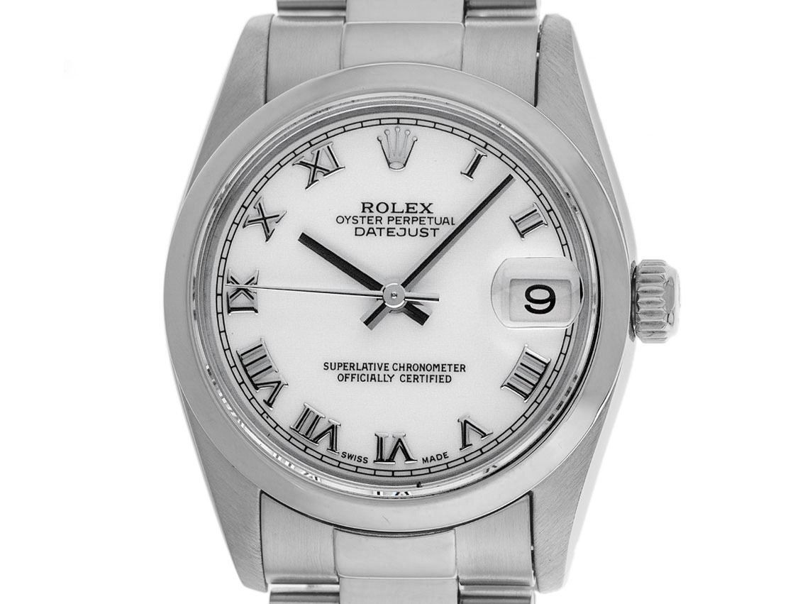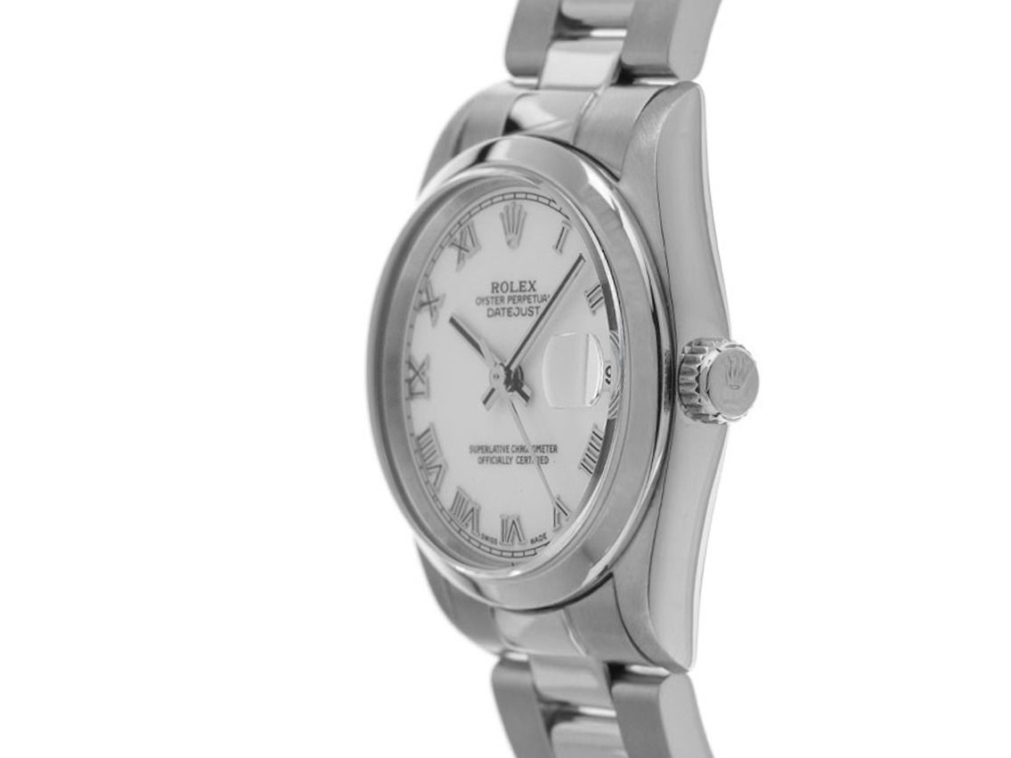 Gehäuse Edelstahl poliert und satiniert, Gehäusedurchmesser ohne Krone 31mm, Gehäusehöhe 10,5mm. Lünette Edelstahl glatt und poliert. Armband Oyster Edelstahl poliert und satiniert, Faltschließe Edelstahl mit Hersteller-Logo. Zifferblatt weiß mit aufgesetzten weißgoldenen römischen Ziffern und weißgoldenen Zeigern. Uhrwerk Automatik, Chronometer mit Zeugnis, Rolex Manufakturkaliber 2235 mit 31 Edelsteinen. Anzeige von Stunde, Minute und Sekunde über Zeiger aus der Mitte mit Sekundenstopp zur sekundengenauen Einstellung der Uhrzeit, Datumsanzeige mit Schnellverstellung unter Glaslupe bei 3 Uhr. Saphirglas kratzfest. Krone verschraubbar met Hersteller-Logo. Boden Edelstahl verschraubt. Gewicht der Uhr inklusive Armband 85g, Länge des Armbandes inklusive Gehäuse 160mm. Referentienummer: 178240, Gehäusenummer: M376XXX, Bouwjaar: 2007, ID: P099896000625H-8500, Artikelnummer:10000080597. Met Gangkontrolle en kompletter äußerlicher Aufarbeitung von Juni 2025. Originele Rolex Box mit Umkarton und Garantie Papiere von Dezember 2009, LC 100 / Germany EU sowie Beschreibung, Ledermäppchen, Rolex Chronometer-Siegel, Tag und Watchregister Auszug von Juni 2025, The Watch Register Zertifikat / ohne Eintrag (Internationale Datenbank für verlorene oder gestohlene Uhren), Volledige set. Zeer goede staat. Lieferzeit sofort.