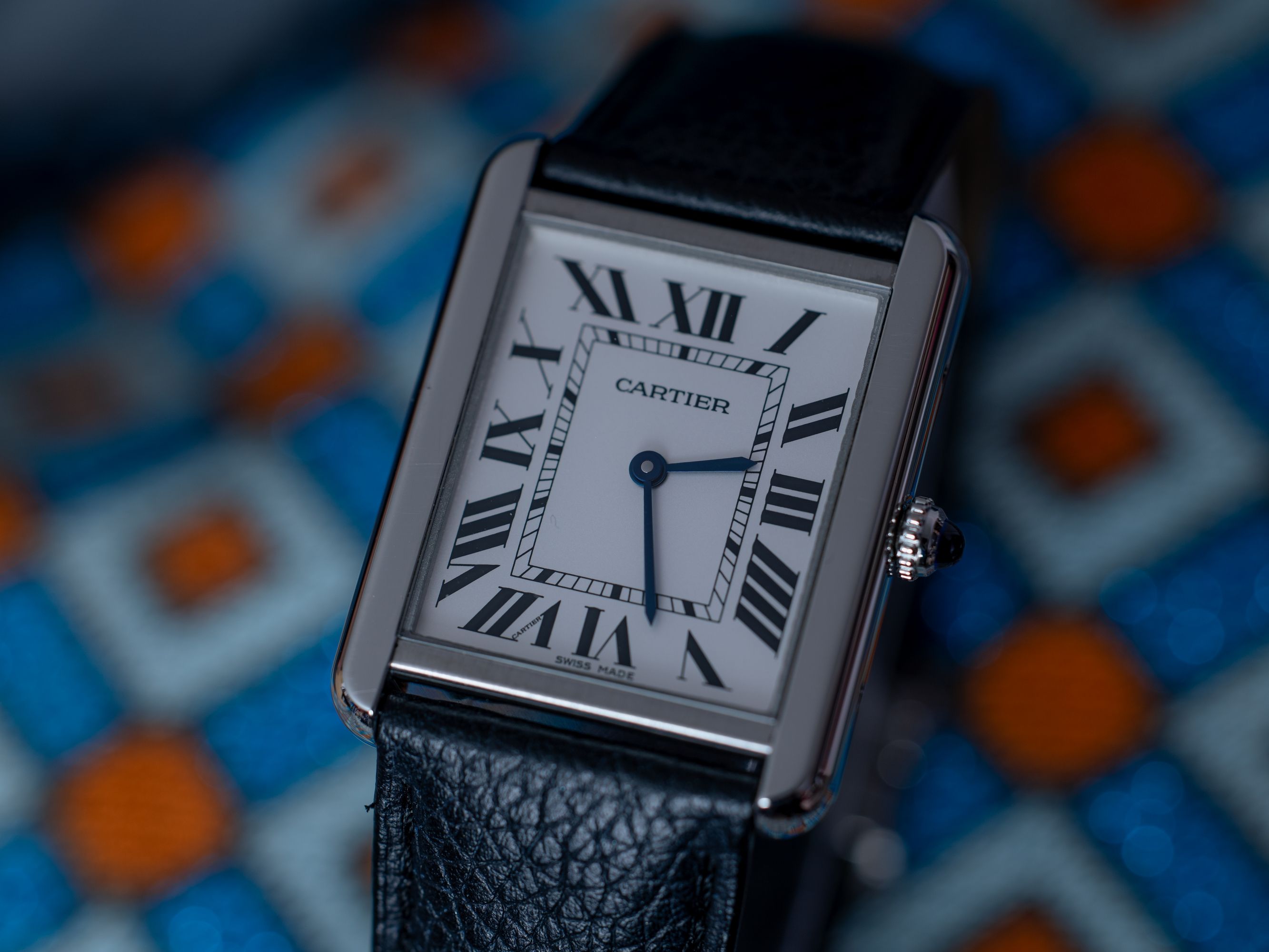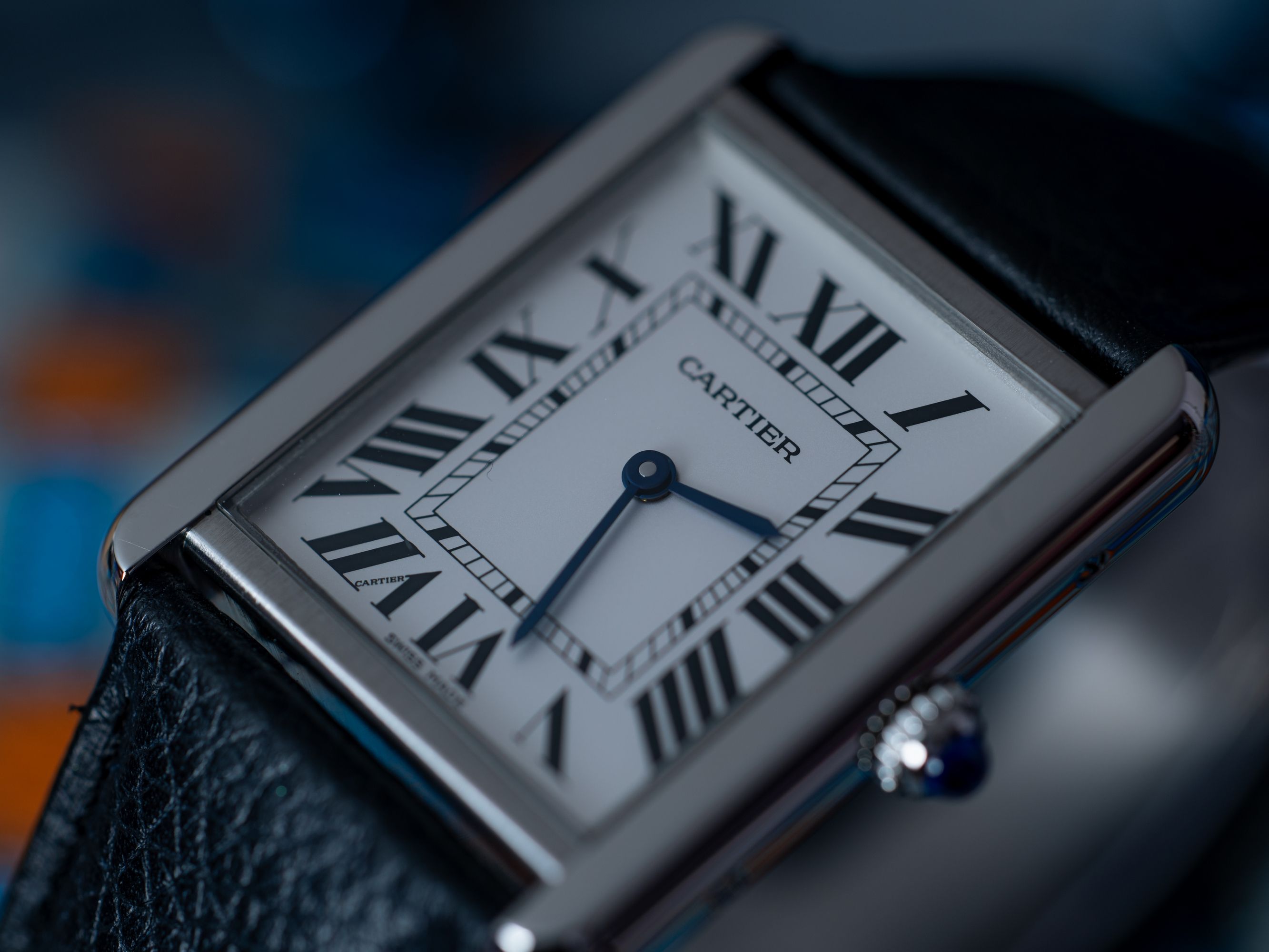 Het horloge betovert met zijn perfect gebalanceerde proporties, waardoor het een ideale keuze is voor zowel mannen- als vrouwenpolsen. De zilveren wijzerplaat met Romeinse cijfers en thermisch geblauwde stalen wijzers weerspiegelt de onmiskenbare elegantie en charme van Cartier.