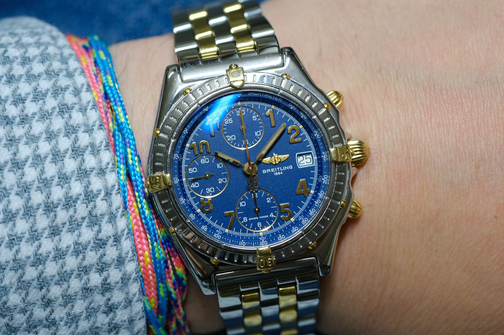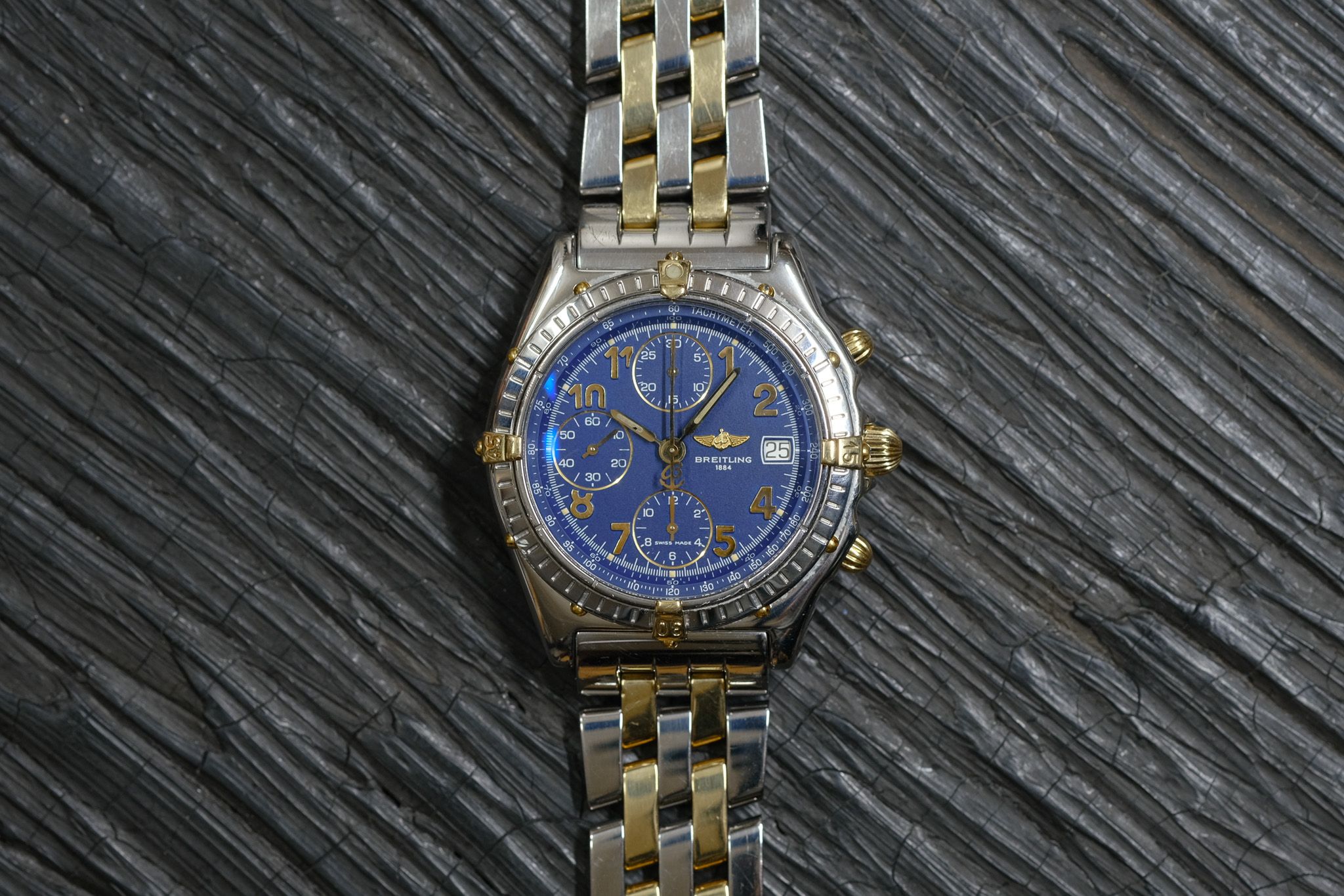 The Chronomat we are offering is in good condition with slight signs of wear on the underside of the bezel. The case are otherwise in very good condition for their age, with no deep scratches or marks.