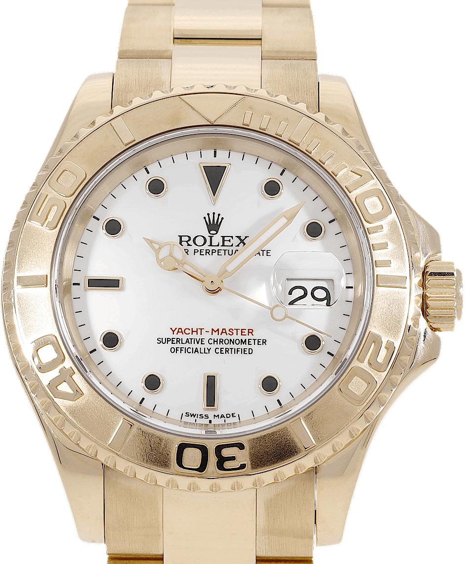 Rolex Yacht-Master 40, Reference: 16628, Gender: Male, Size: 40mm, Dial color: White, Strap material: Yellow Gold, Movement: Automatic, Year: 2006, Condition: Previously worn with some signs of usage. The movement is flawless and the case has been cleaned. watch tested to ensure full functionality. An inspection by our certified watchmakers guarantees its authenticity., Documents: Original papers, CHRONEXT Certificate
