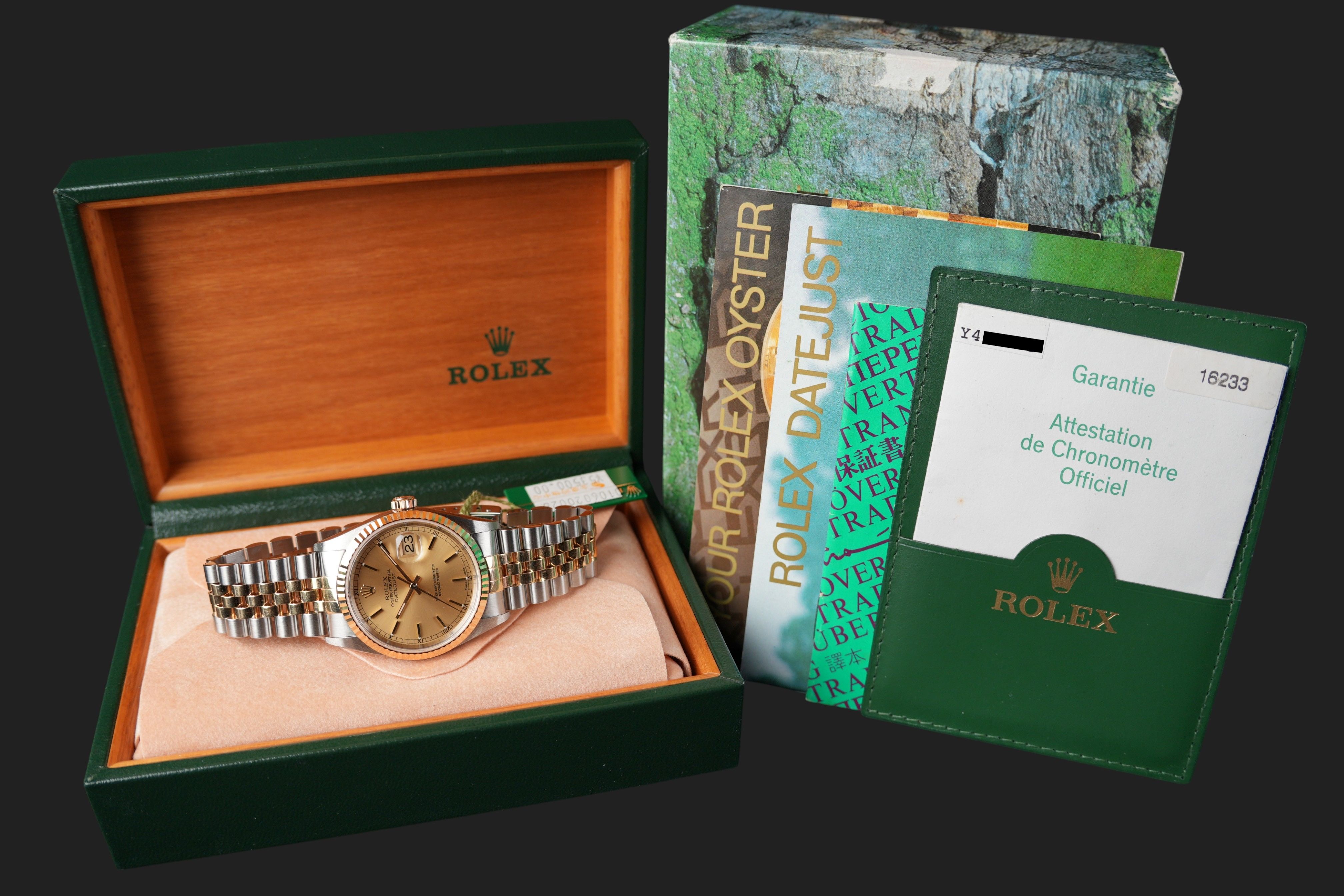 Dial colour is champagne.Originally sold by Rolex 01/2004, LC888 (Hong Kong).