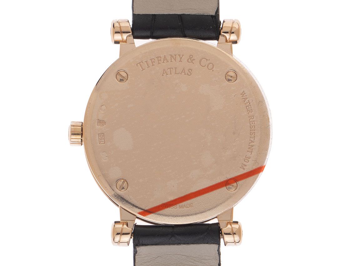 Tiffany & Co. Atlas 18kt Roségoud Diamanten Quartz Horloge Leder Vouwsluiting