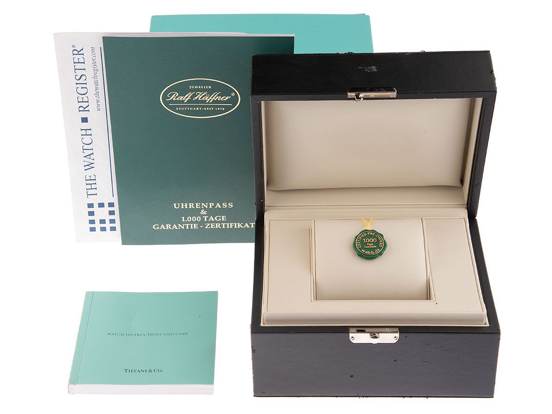 Inklusive certified pre owned Siegel / Uhrenpass mit einem Farbbild, der genauen Beschreibung sowie dem Wiederbeschaffungswert der Uhr über 7950,-€ und 1000 Tage Garantie ab Kaufdatum.