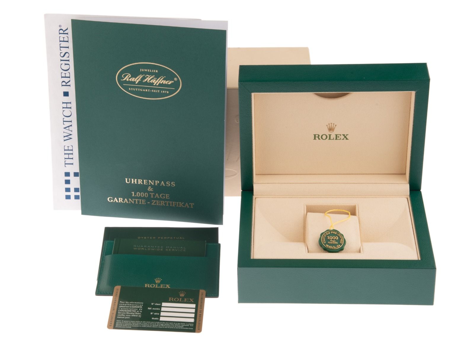 Inklusive certified pre owned Siegel / Uhrenpass mit einem Farbbild, der genauen Beschreibung sowie dem Wiederbeschaffungswert der Uhr über 14900,-€ und 1000 Tage Garantie ab Kaufdatum.