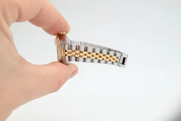 Rolex Datejust 68273 uit 1991 met de champagnekleurige wijzerplaat in uitstekende staat, inclusief de originele doos. Al onze horloges zijn grondig gecontroleerd door onze eigen horlogemaker en waar nodig onderhouden.