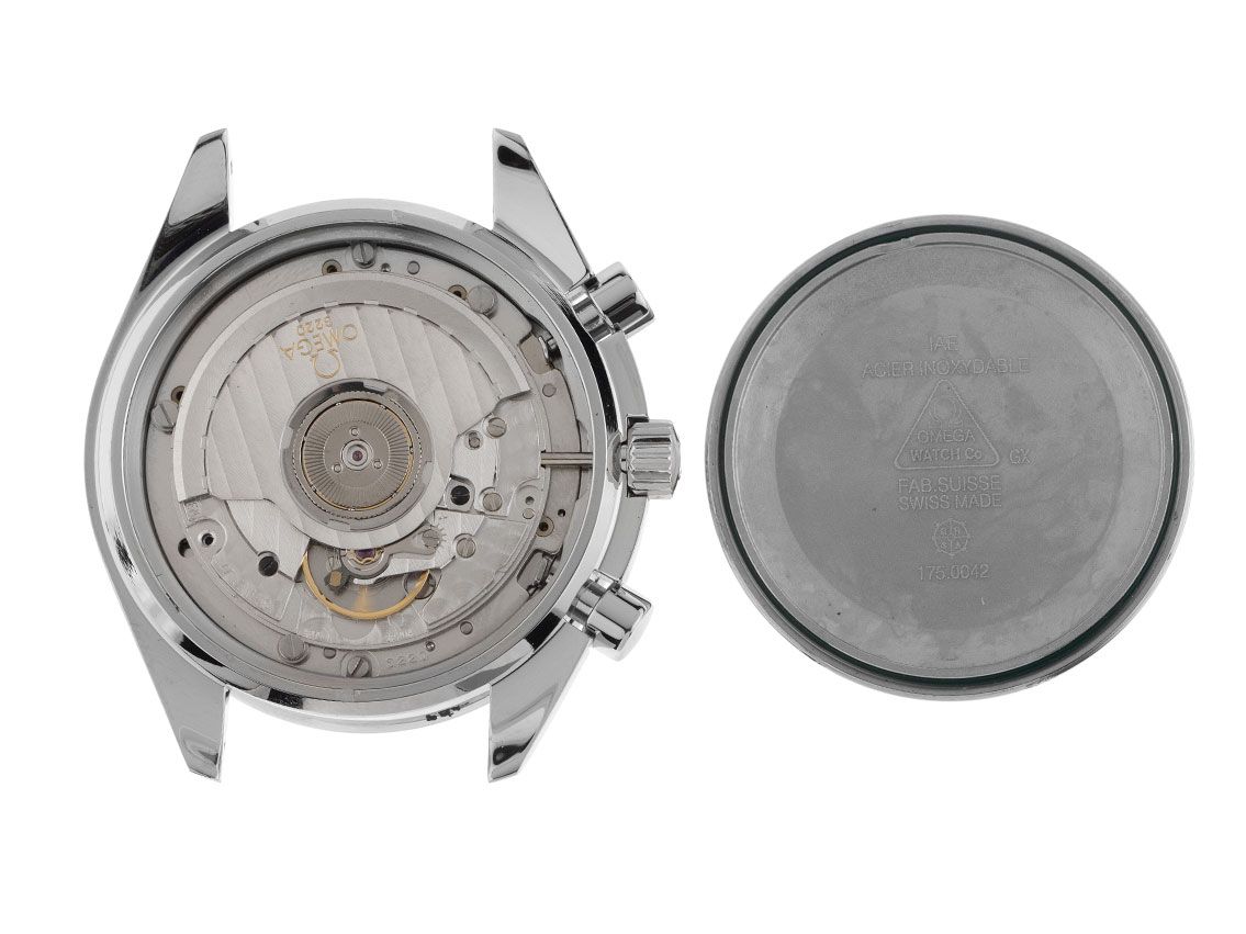 Behuizing gepolijst en gesatineerd staal, behuizingsdiameter zonder kroon 39mm, behuizingshoogte 17,7mm. Lunette gepolijst staal met tachymeterschaal. Armband zwart krokoleder met lichte siernaad, aanzetbreedte 18mm, pin-buckle van staal met fabrikantlogo. Wijzerplaat licht parelmoer met blauwe Arabische cijfers en gepolijste stalen wijzers. Uurwerk automatisch, chronograaf, chronometer, Omega manufactuurkaliber 3220 met 47 edelstenen. Weergave van uur en minuut via centrale wijzers, kleine seconde met seconde-stop voor nauwkeurige tijdinstelling op 3 uur. Saffierglas krasbestendig. Kroon van staal met fabrikantlogo. Achterkant van staal gegraveerd. Gewicht van het horloge inclusief armband 69g. Referentienummer: 175.0042, behuizingsnummer: 90410XXX, bouwjaar: 1999, ID: P130048000925H-6800, artikelnummer: 10000081718. Met gangcontrole en volledige uiterlijke opfrissing van september 2025. Originele Omega doos en beschrijving evenals een uittreksel van het Watchregister van september 2025, The Watch Register certificaat / zonder vermelding (Internationale database voor verloren of gestolen horloges). Superscherpe aanbieding. Zeer goede staat. Leveringstijd direct.