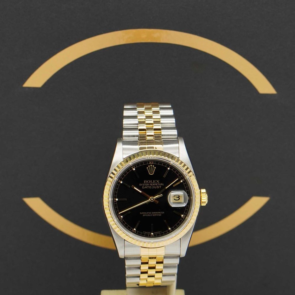 Rolex Datejust 36 16233 with Box & Papers from 1995. Very good condition. Every watch is checked on authenticity by our master watchmakers. With every sale an authenticity certificate is given. On every watch there is a warranty of 12 months on the watch and movement. Although it is rarely used since watches are maintained and - if neccesary - serviced before being sold.