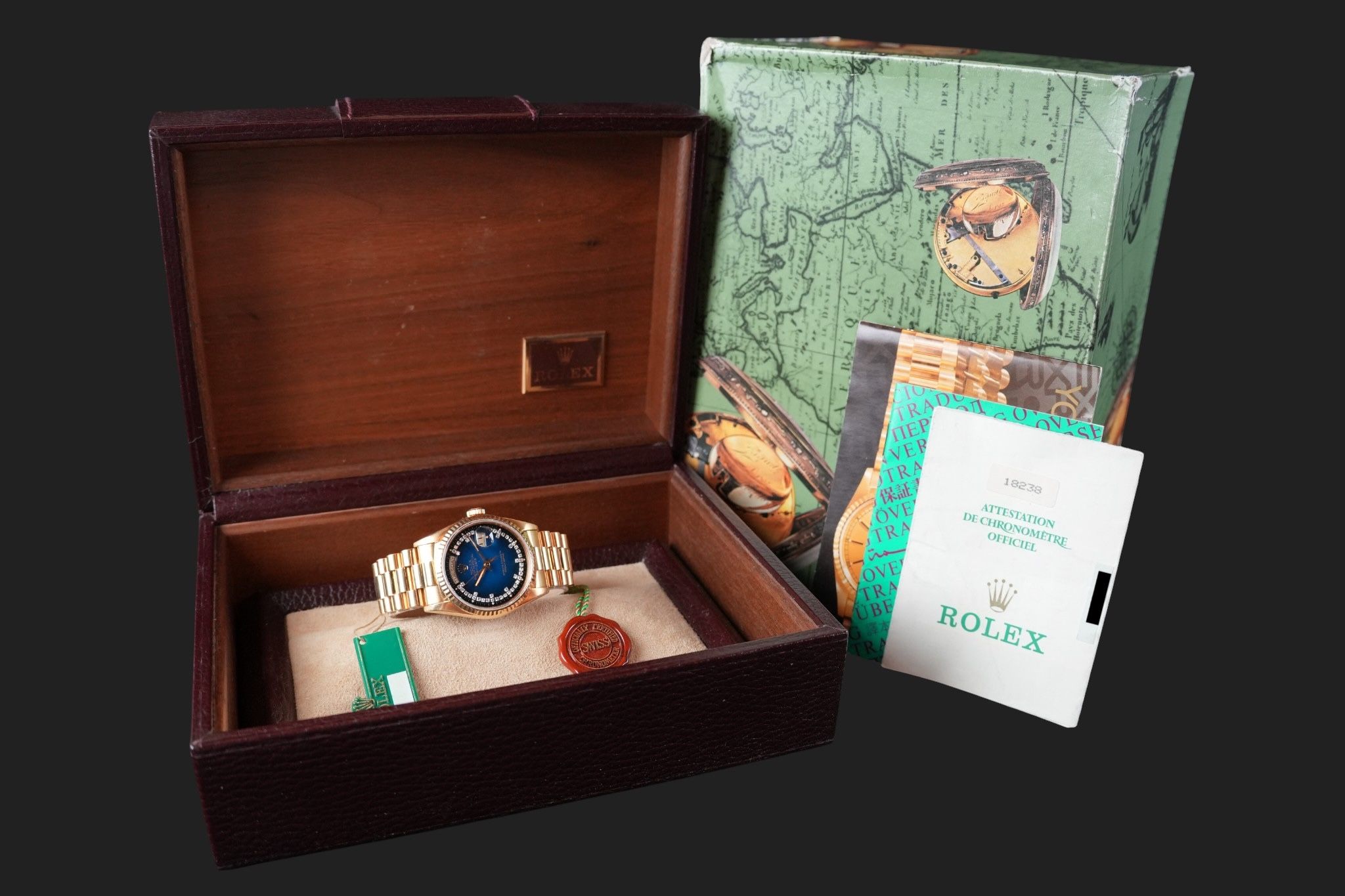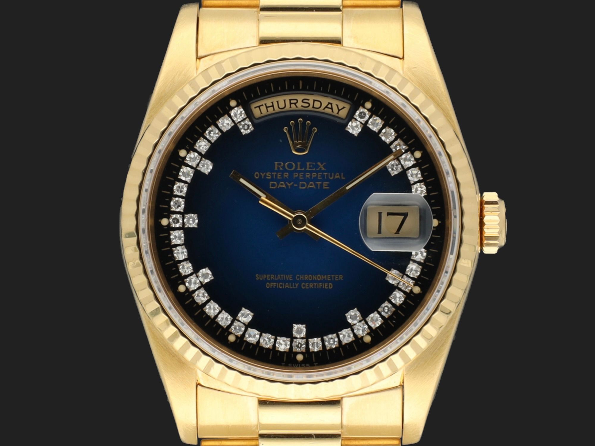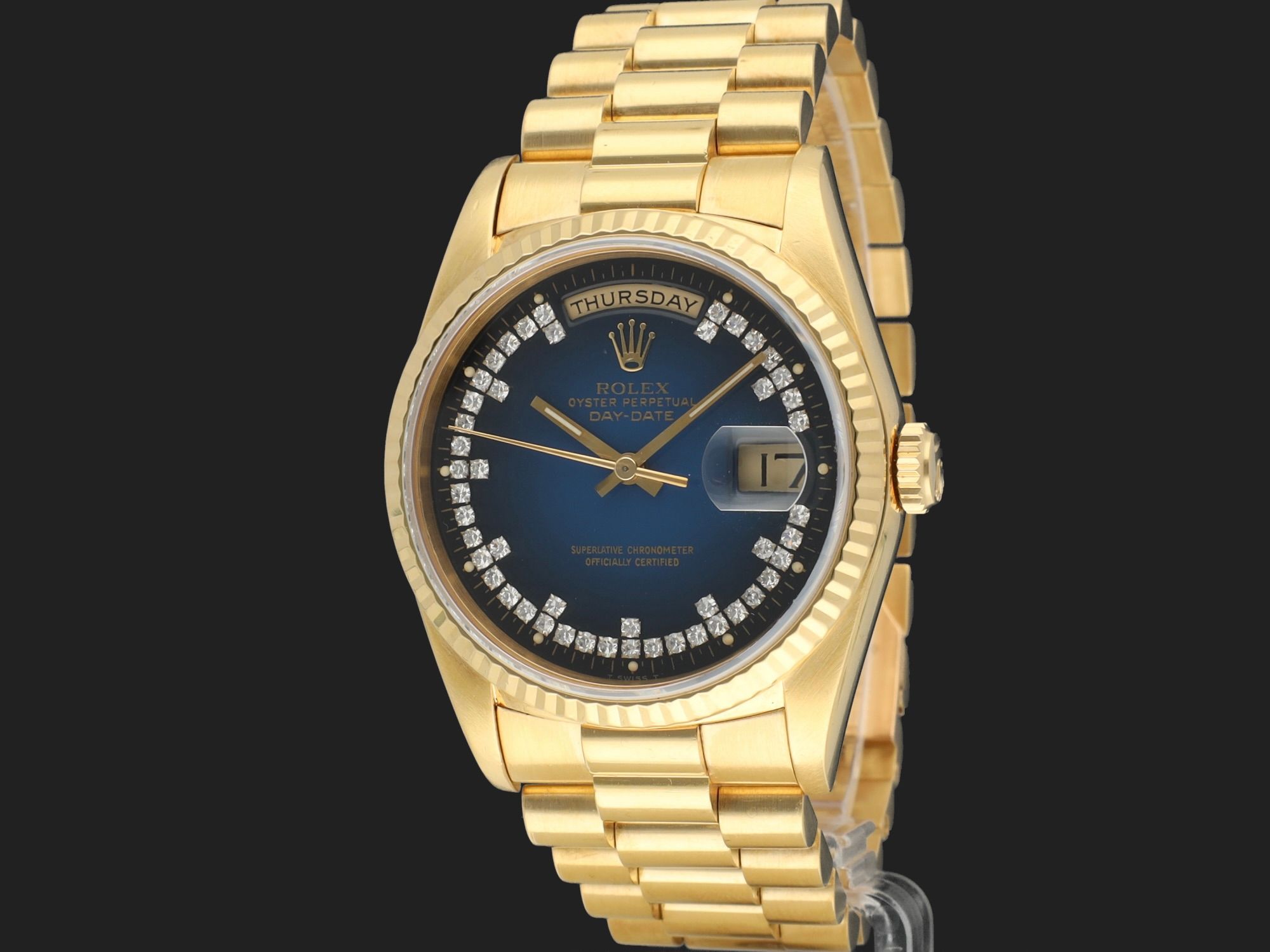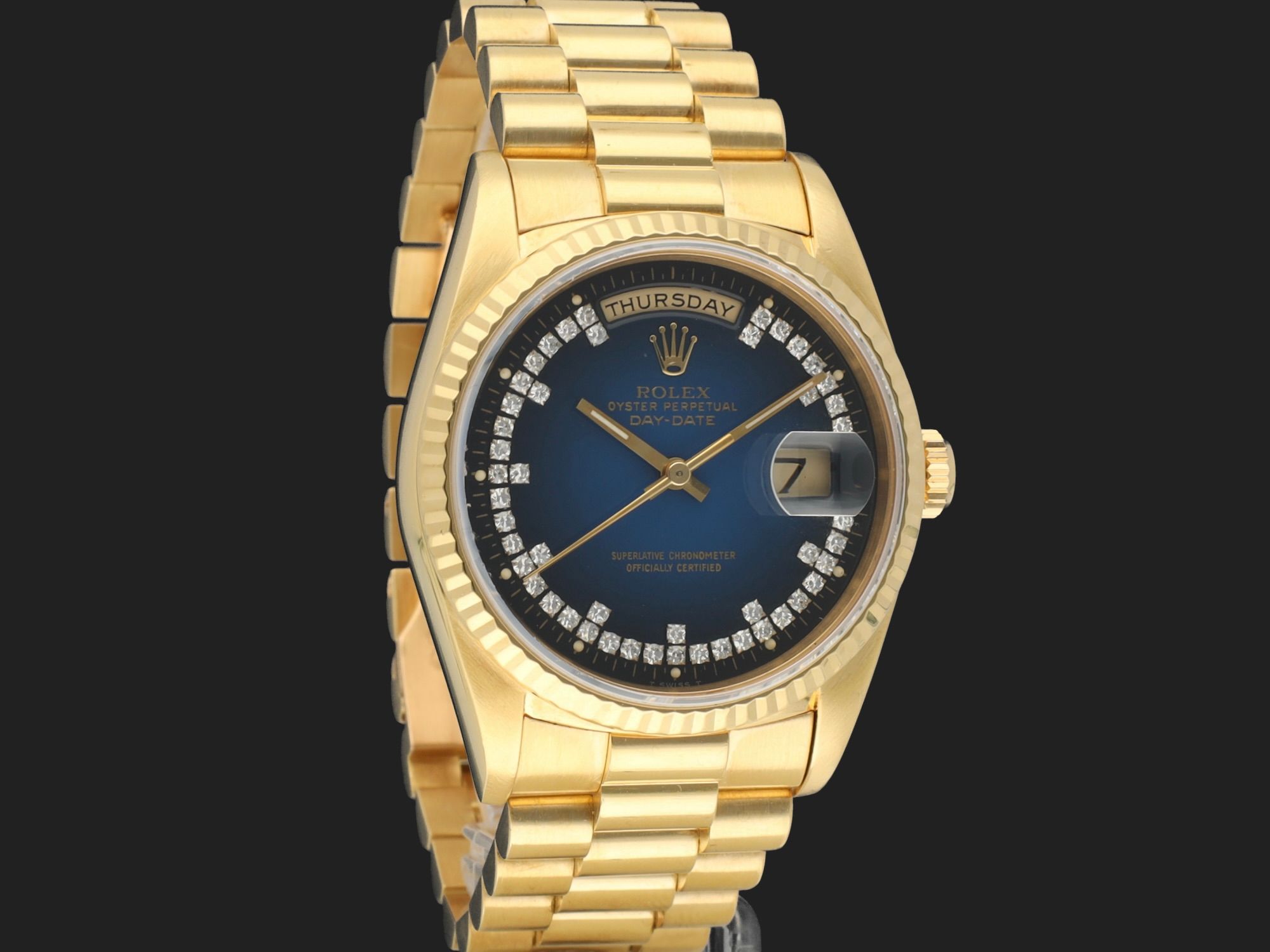 Rolex Day-Date 36 Day-Date 36 Yellow Gold Blue Vignette String Diamond Dial 18238