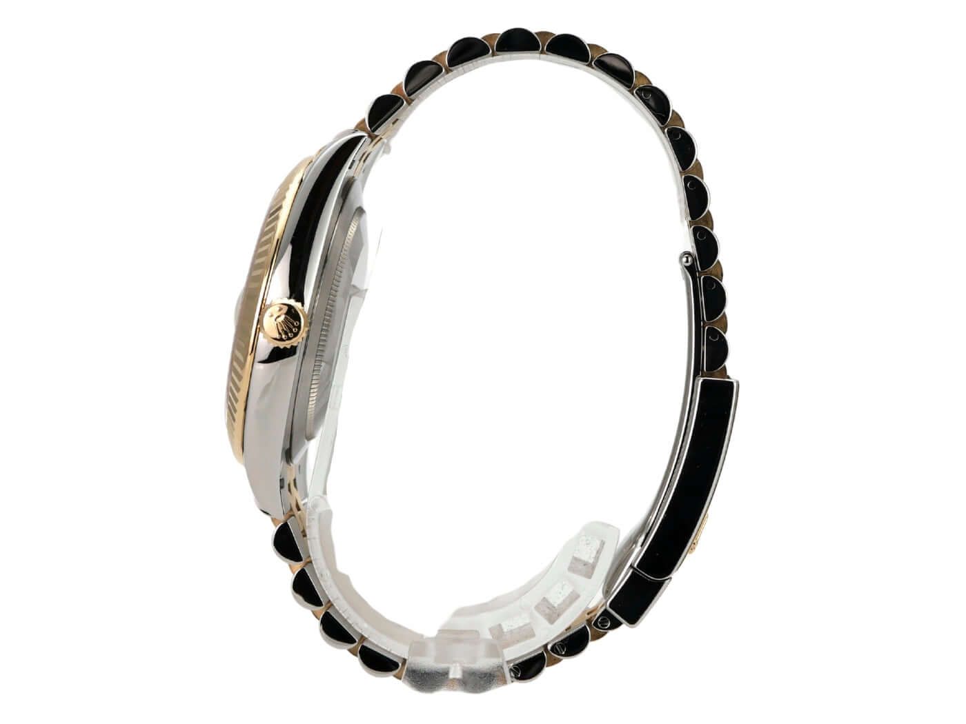 Behuizing gemaakt van staal / gepolijst en satijn afgewerkt geel goud, behuizingsdiameter 41 mm, gefluteerde bezel van 18 kt geel goud, Jubilee armband gemaakt van staal / 18 kt geel goud gepolijst en satijn afgewerkt met vouwsluiting, zilverkleurige wijzerplaat met 18 kt geel gouden luminescente indexen, automatische beweging, Rolex kaliber 3235, 70 uur gangreserve, datumweergave, chronometer, krasbestendig saffierglas, geschroefde kroon van 18 kt geel goud, geschroefde achterkant van de behuizing van staal, waterbestendig tot 10 bar.