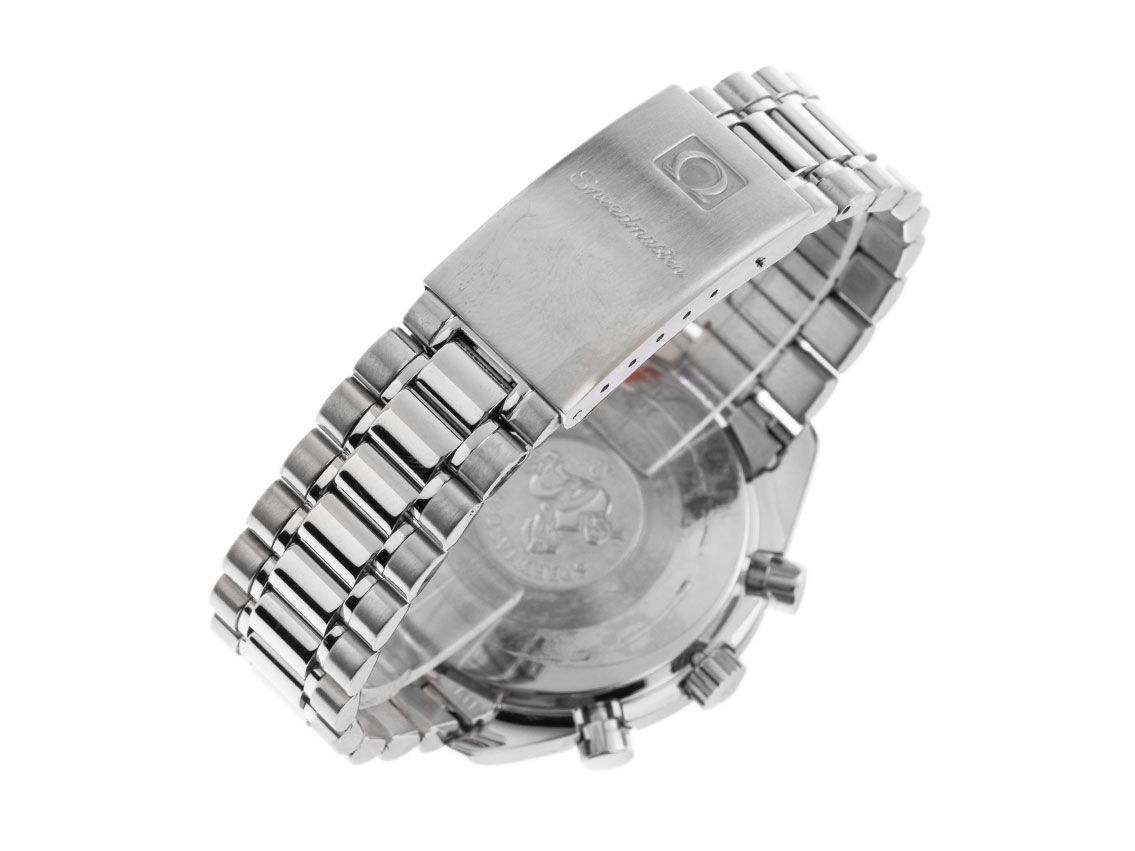 Gehuis van gepolijst en satijn afgewerkt roestvrij staal, behuizingsdiameter zonder kroon 39mm, behuizingshoogte 12,1mm. Lunette van gepolijst roestvrij staal met zwart inlay en tachymeterschaal. Armband van gepolijst en satijn afgewerkt roestvrij staal, vouwsluiting van roestvrij staal met fabrikantlogo. Wijzerplaat zwart met indexen en witte wijzers. Uurwerk automatisch, chronograaf, Omega manufactuurkaliber 1141 met 45 edelstenen. Weergave van uur en minuut via centrale wijzers, kleine seconde met seconde-stop voor nauwkeurige tijdinstelling op 3 uur. Gewelfd plexiglas. Kroon met fabrikantlogo. Achterkant van roestvrij staal gegraveerd met zeepaardje-medaillon. Gewicht van het horloge inclusief armband 106g, lengte van de armband inclusief behuizing 205mm. Referentienummer: 3510.50.00, behuizingsnummer: 55094XXX, ID: P181044761025H-6900, artikelnummer: 10000082899. Met gangcontrole en volledige uiterlijke opfrissing van november 2025. Originele Omega doos met omdoos en garantiepapieren van juni 1996, evenals beschrijving en Watchregister uittreksel van november 2025, The Watch Register certificaat / zonder vermelding (Internationale database voor verloren of gestolen horloges), Full Set. Superscherpe aanbieding, zeer zeldzaam verzamelobject, bijna niet gedragen. Zeer goede staat. Leveringstijd direct.