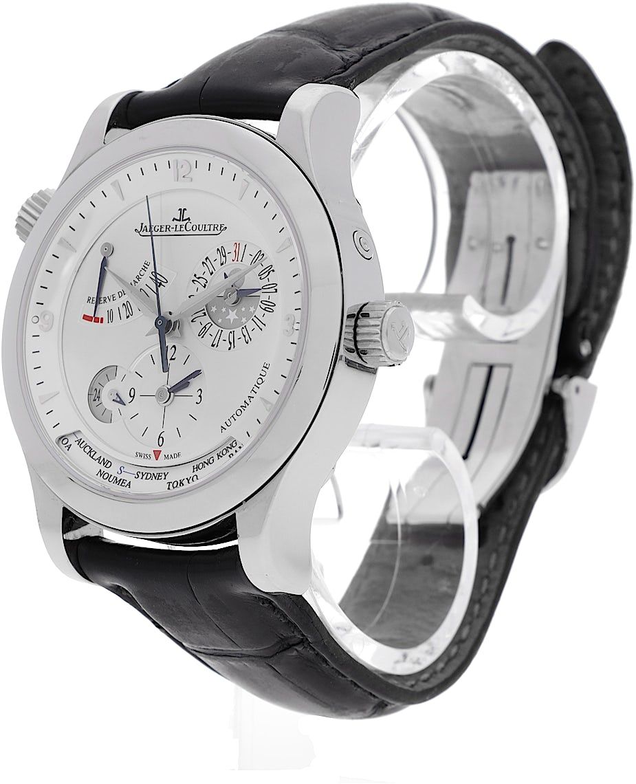 Jaeger-LeCoultre Master Geographic, Reference: 147.8.57s, Gender: Male, Size: 40mm, Dial color: Silver, Strap material: Alligator Leather, Movement: Automatic, Condition: Previously worn with some signs of usage. The movement is flawless and the case has been cleaned. watch tested to ensure full functionality. An inspection by our certified watchmakers guarantees its authenticity., Documents: Original papers, CHRONEXT Certificate