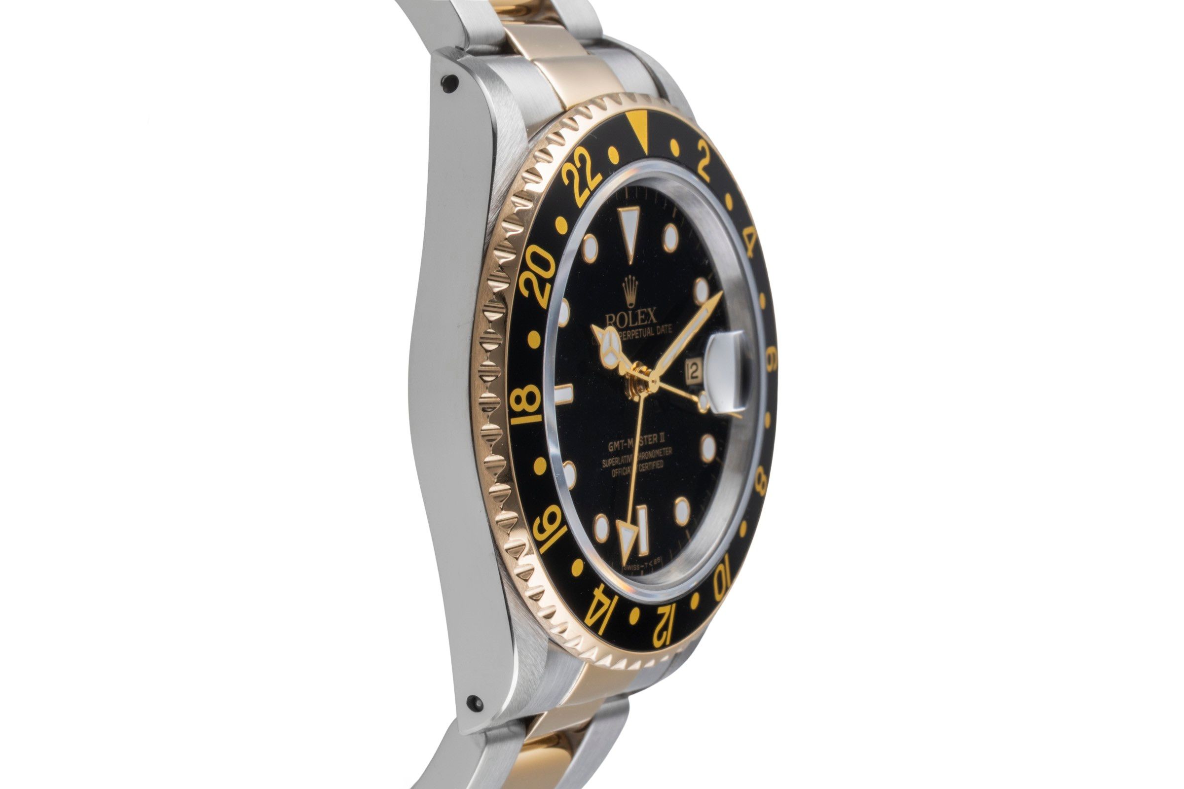 Alternative title: Rolex 16713 GMT-Master II Two Tone / Black; Rolex GMT-Master II Stahl / Gold Herrenuhr Oyster Perpetual Ref. 16713 B&P 1997 [2505688]