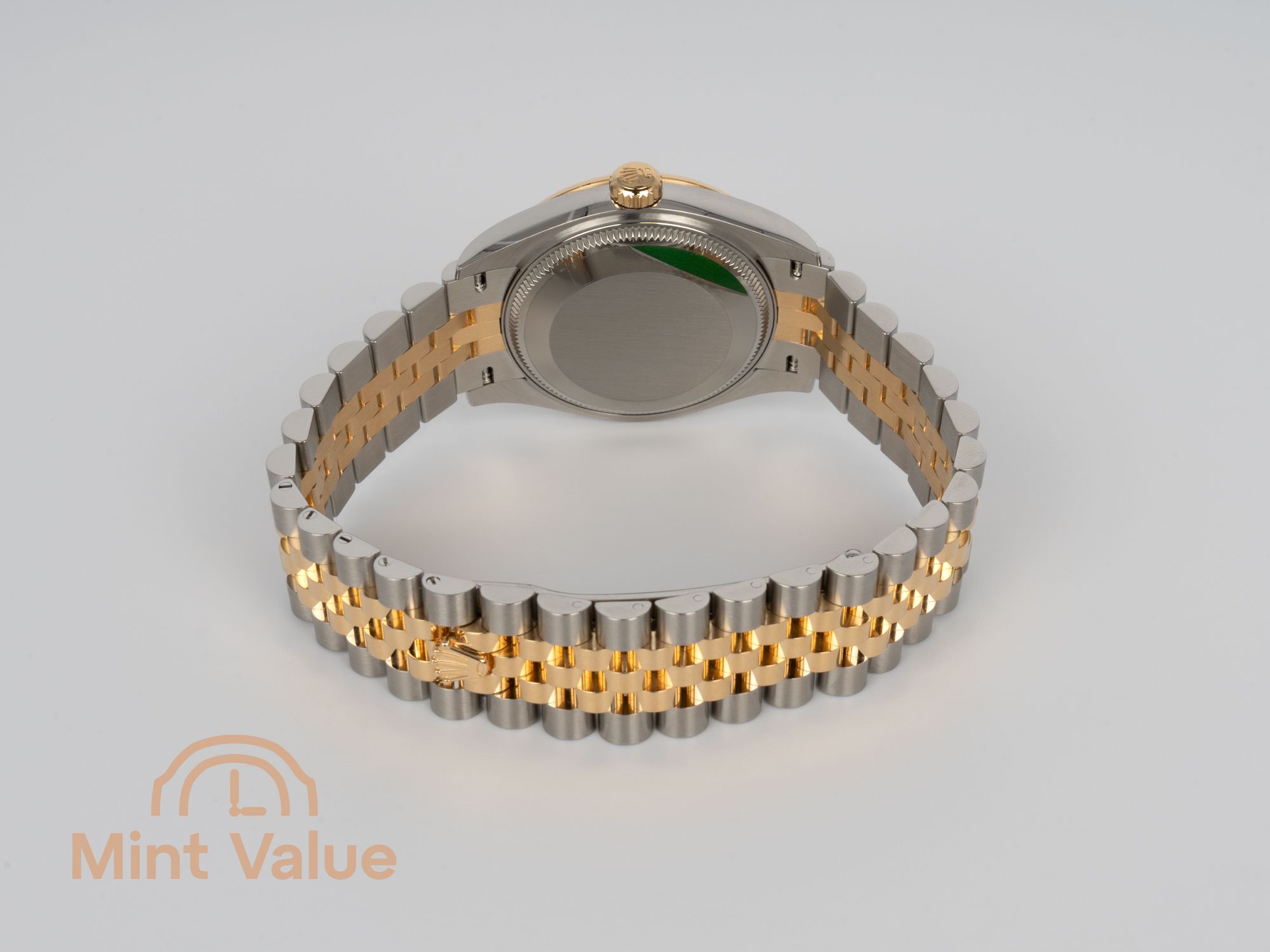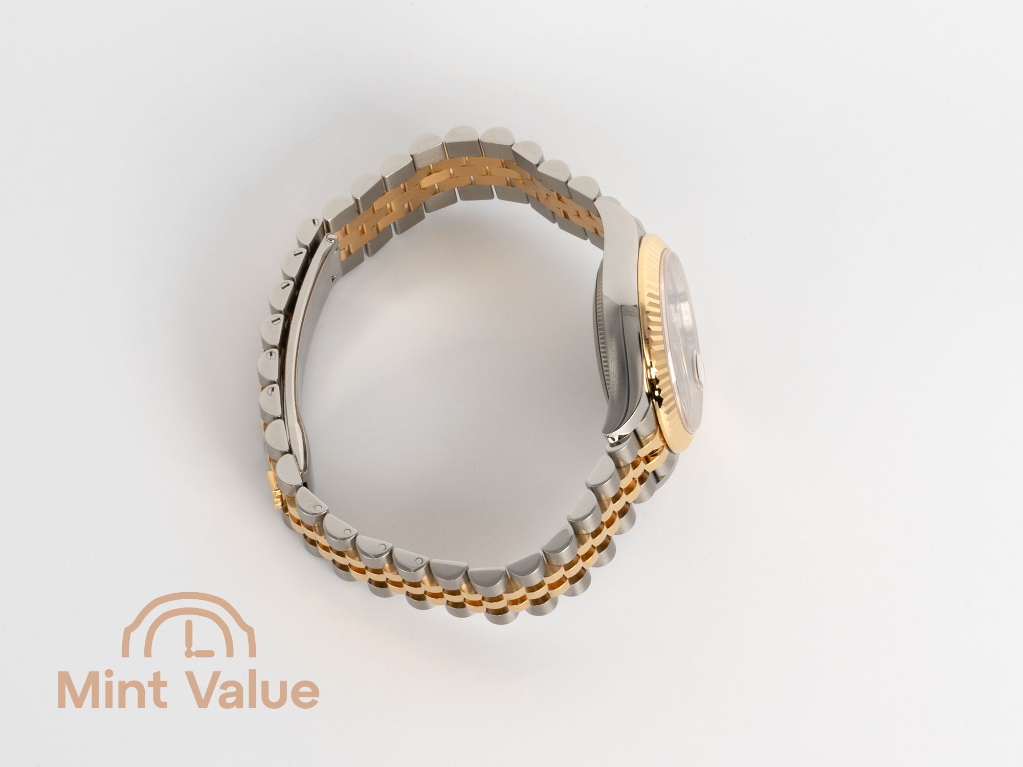 Each diamond is set in 18ct gold to ensure lasting brilliance, while the fluted bezel and Jubilee bracelet highlight Rolex’s meticulous artistry. The grey dial introduces depth and modernity — a graceful alternative to the more traditional tones in the Datejust family.