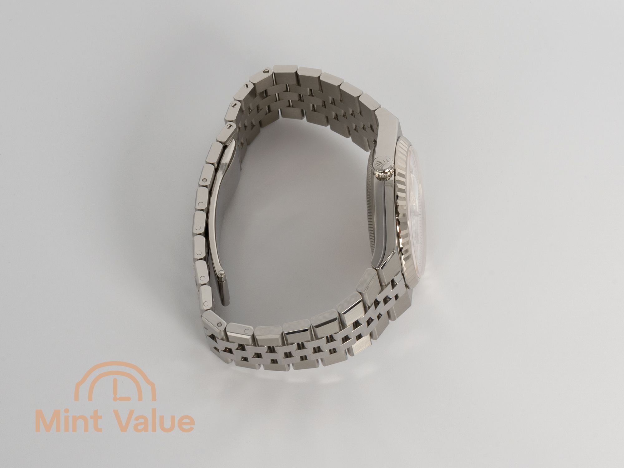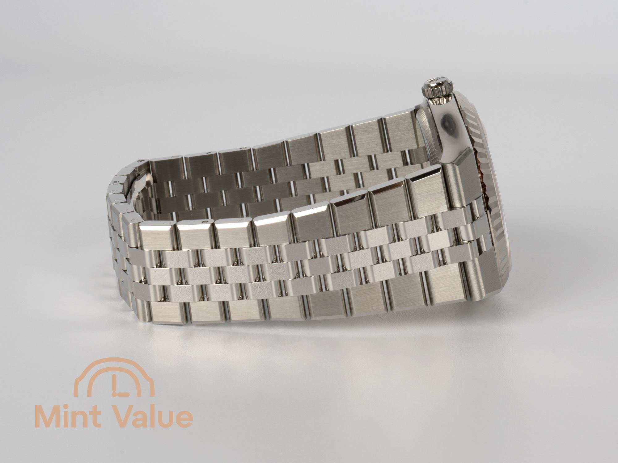 De witte "honingraat" motief wijzerplaat introduceert textuur en nuance die zelden gezien worden in de klassieke lijn van Rolex. Elke hexagonale cel reflecteert het licht anders, waardoor het horloge een zachte, dynamische speelsheid van toon over zijn oppervlak krijgt — elegant, tactiel en stil uniek.
