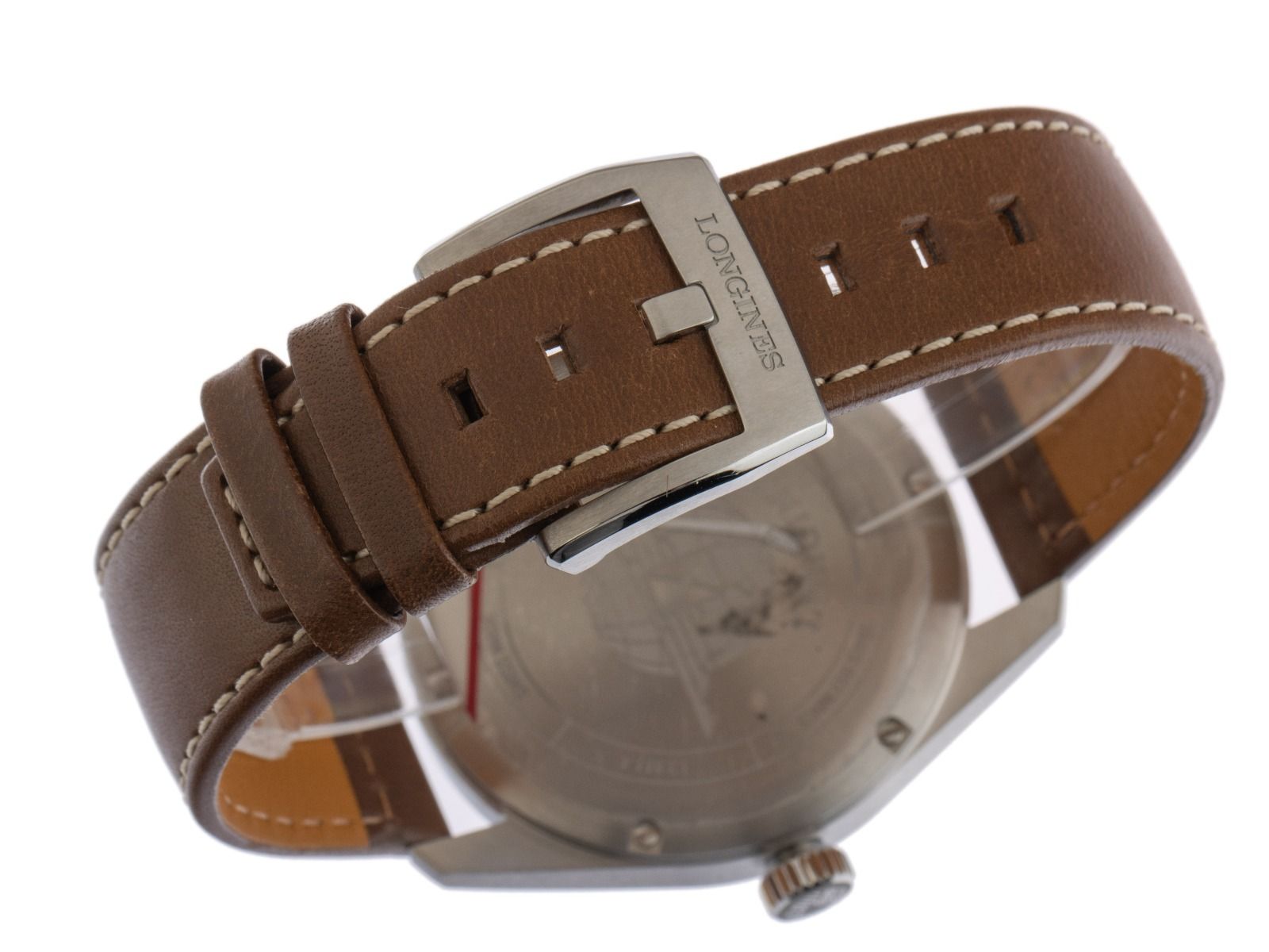 Behuizing gepolijst en gesatineerd roestvrij staal, behuizingsdiameter zonder kroon 42mm, behuizingshoogte 12,2mm. Lünette gepolijst en gesatineerd roestvrij staal. Armband bruin leer met lichte siernaad, aanzetbreedte 22mm, pin-buckle van roestvrij staal met fabrikant-logo. Wijzerplaat zilverkleurig met opgezette Arabische luminescerende cijfers en witte luminescerende wijzers. Uurwerk automatisch, kaliber L888.4, gangreserve ca. 64 uur. Weergave van uur, minuut en seconde via centrale wijzers, datumweergave met snelle instelling bij 3 uur. Saffierglas krasbestendig. Kroon schroefbaar met fabrikant-logo. Achterkant van roestvrij staal 6-voudig geschroefd en gegraveerd. Gewicht van het horloge inclusief armband 89g. Waterdicht tot 10 ATM. Referentienummer: L3.811.4.73.2, ID: ST610230601125H-2250, artikelnummer: 10000083567. Originele Longines doos met omdoos en garantiepapieren van 2025, Full Set. Ongedragen. Levertijd direct.