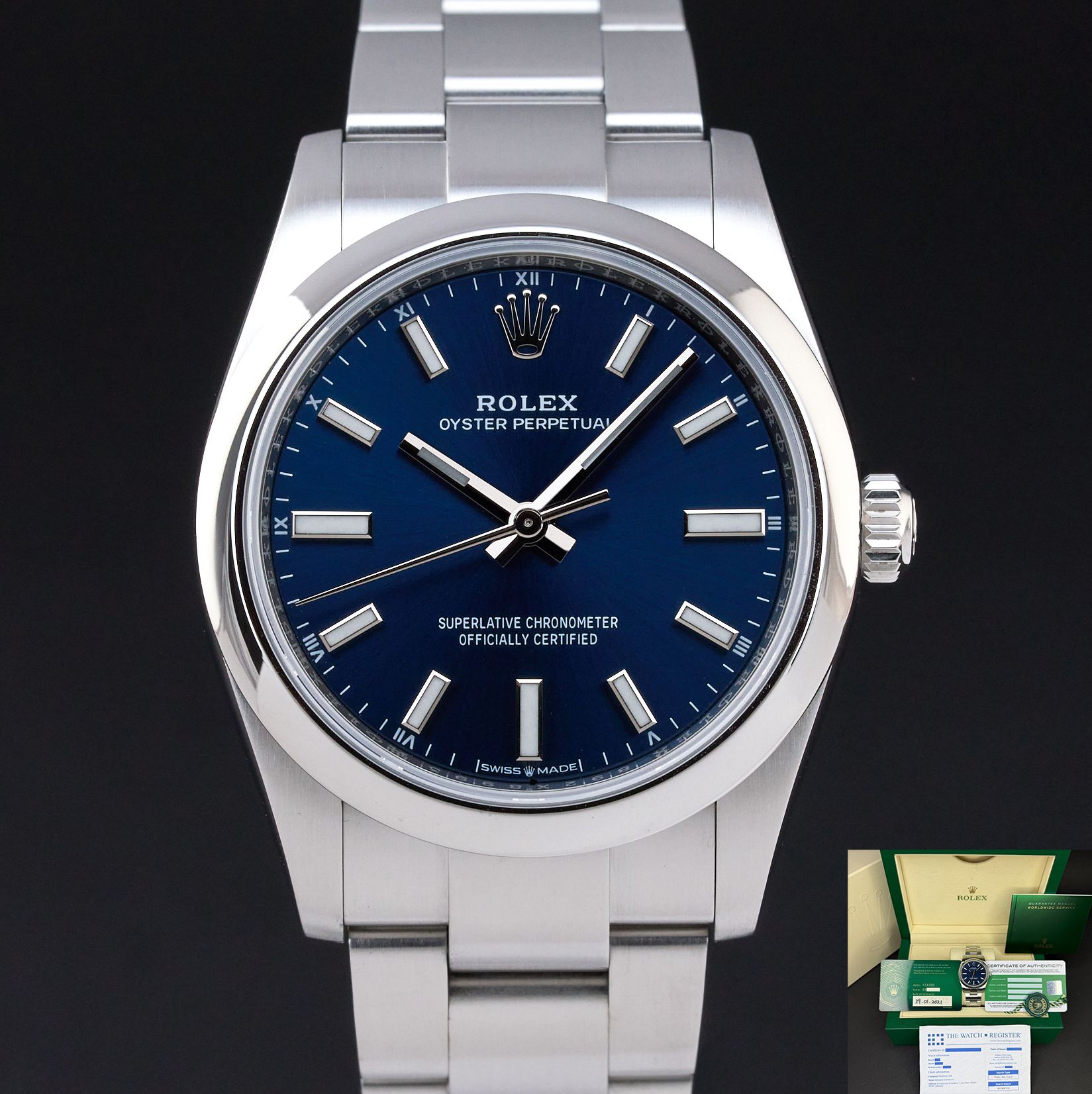 Rolex Oyster Perpetual 34 Rolex Oyster Perpetual, 124200, 34mm, 2021, Steel, Blue dial, Fullset, Official warranty
