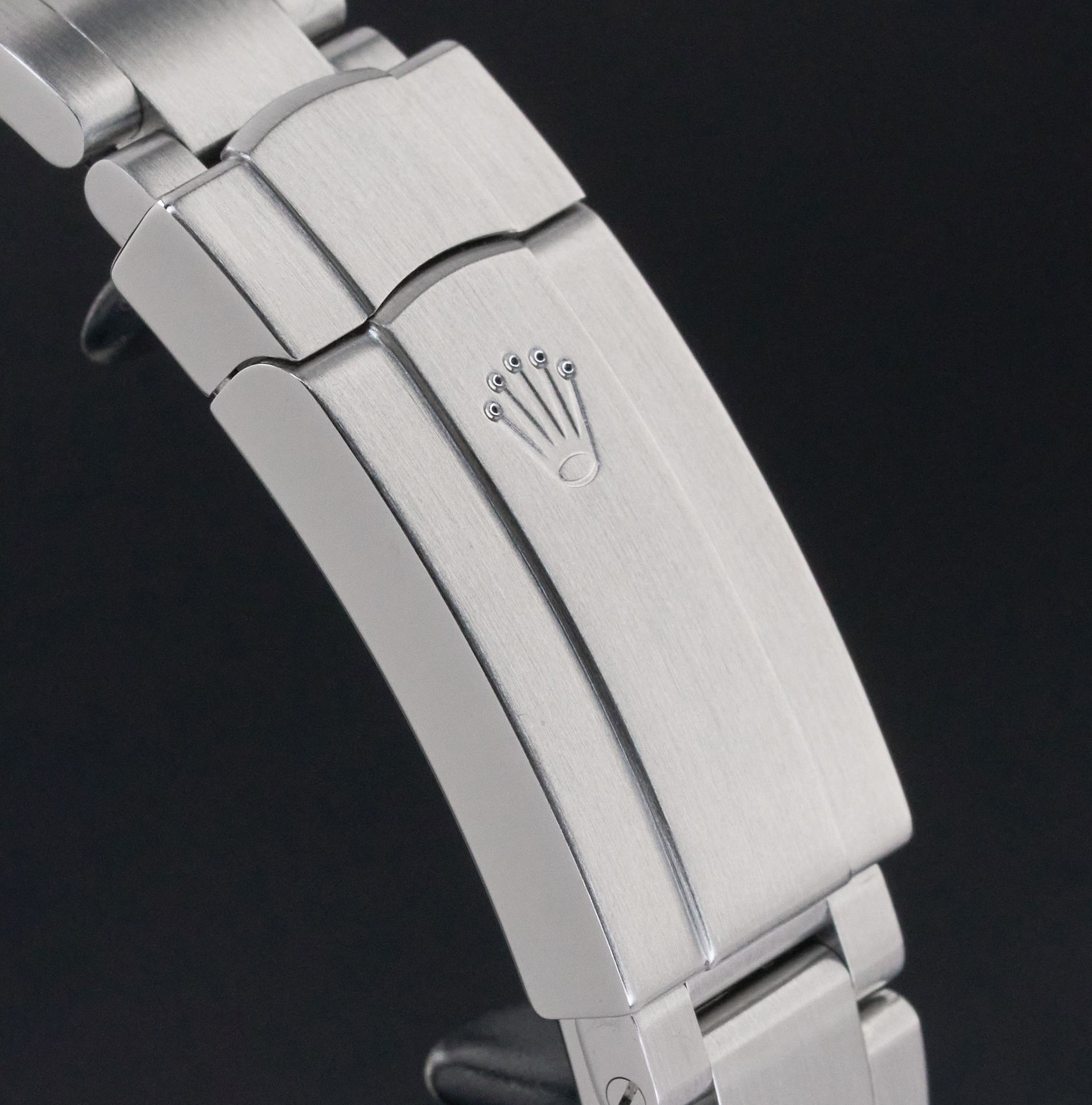 Deze Rolex Oyster Perpetual 124200 heeft een blauwe wijzerplaat en is gemaakt van roestvrij staal, met een productiejaar van 2021.