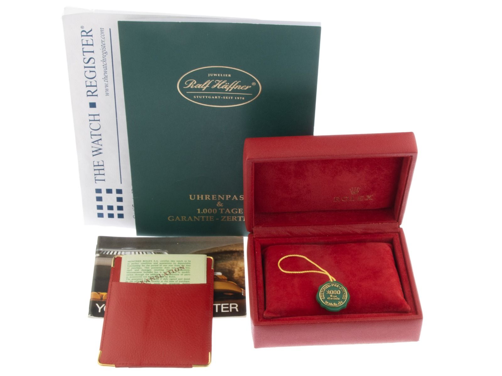 Inklusive certified pre owned Siegel / Uhrenpass mit einem Farbbild, der genauen Beschreibung sowie dem Wiederbeschaffungswert der Uhr über 6500,-€ und 1000 Tage Garantie ab Kaufdatum.