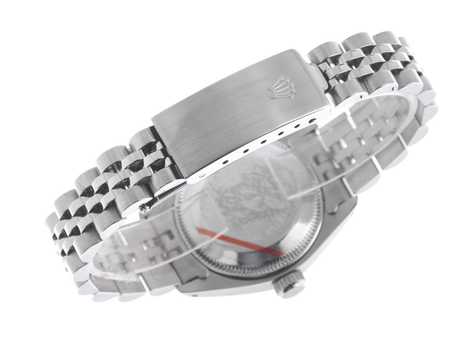 Kast van gepolijst en gesatineerd staal, kastdiameter zonder kroon 26mm, kasthoogte 10,7mm. Lunette van 18kt witgoud, geribbeld en gepolijst. Armband van gepolijst en gesatineerd staal, vouwsluiting van staal met fabrikantlogo. Wijzerplaat zilverkleurig met opgezette witgouden indexen en witgouden wijzers. Uurwerk automatisch, chronometer, Rolex Manufakturkaliber 2030 met 28 edelstenen. Weergave van uur, minuut en seconde via centrale wijzers met seconde-stop voor nauwkeurige tijdinstelling, datumaanduiding onder vergrootglas bij 3 uur, open 6/9 (open 6 en 9 in de datumaanduiding). Plexiglas. Kroon schroefbaar met fabrikantlogo. Achterkant van staal, geschroefd en gegraveerd. Gewicht van het horloge inclusief armband 49g, lengte van de armband inclusief kast 175mm. Referentienummer: 6917, bouwjaar: 1979, kastnummer: 6082XXX, ID: P203746501225H-6500, artikelnummer: 10000083594. Met gangcontrole en volledige uiterlijke opfrissing van december 2025. Originele Rolex doos met omdoos en beschrijving, lederen etui, vertaalboekje en uittreksel van het Watch Register van december 2025, The Watch Register certificaat / zonder vermelding (Internationale database voor verloren of gestolen horloges). Superscherpe aanbieding, investering met waardevermeerderingspotentieel. Zeer goede staat. Leveringstijd direct.
