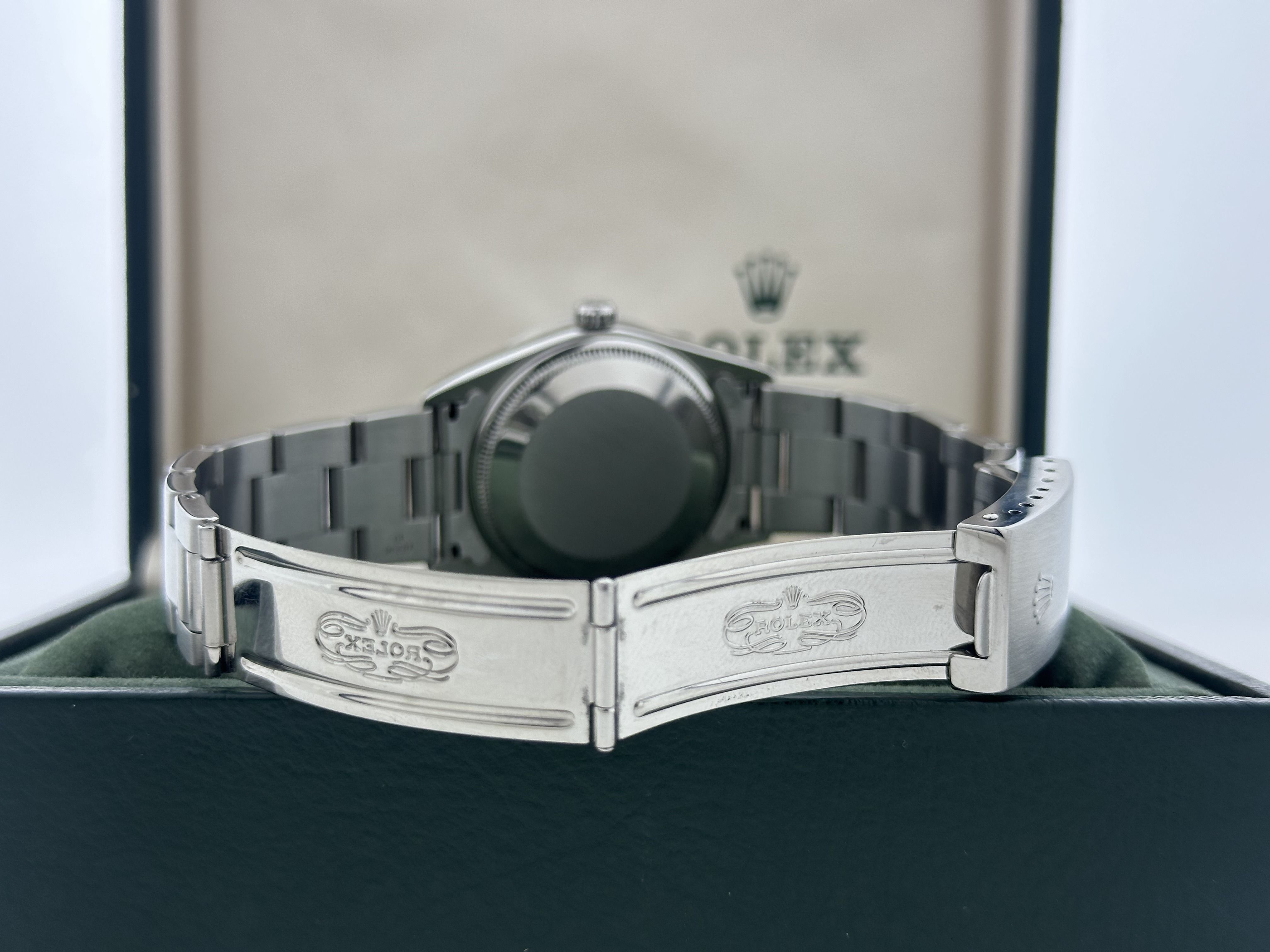 The Rolex comes with 24 months of warranty.A steel vintage Rolex Air-King 34, ref. 14010M. The Rolex has a 34mm case with a steel Oyster-bracelet. The watch has a white dial with Roman numerals. The watch is from 2006/2007. The Rolex has been serviced recently and is in a good condition. The Air-King comes with its originel box.