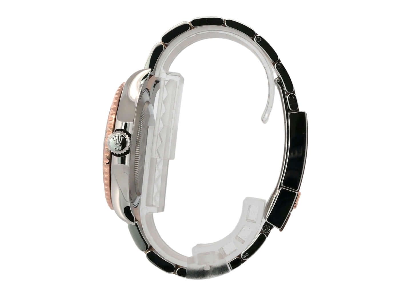 Behuizing gemaakt van Oystersteel / 18 kt Everose goud, gepolijst en satijn afgewerkt, behuizingsdiameter 40 mm, bezel gemaakt van 18 kt Everose goud, gegraveerd met 60 minuten schaal, draaibaar aan beide zijden, Oyster roestvrijstalen Oystersteel / 18 kt Everose goud armband, gepolijst en satijn afgewerkt met veiligheidsvouwsluiting, zwarte wijzerplaat met ingelegde luminescerende indexen en luminescerende stippen, luminescerende wijzers, automatisch uurwerk, Rolex manufactuur kaliber 3235 met 31 juwelen, oscillatie 28.800 A/h, 70 uur gangreserve, datumaanduiding, chronometer, krasbestendig saffierglas, geschroefde 18 kt Everose gouden kroon met zijbescherming, geschroefde roestvrijstalen achterkant, waterbestendig tot 10 bar.