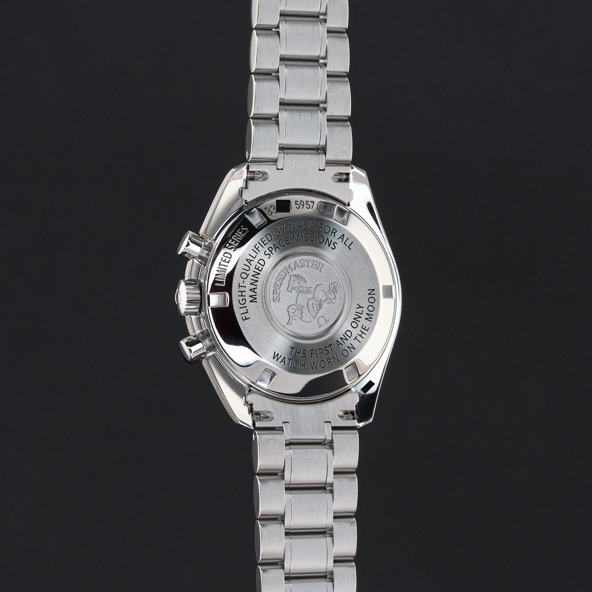 This Omega Speedmaster Professional Moonwatch 50th Anniversary 311.30.42.30.01.001 features a Black dial and is crafted from stainless steel, with a production year of 2007.Case No: 7719XXXX