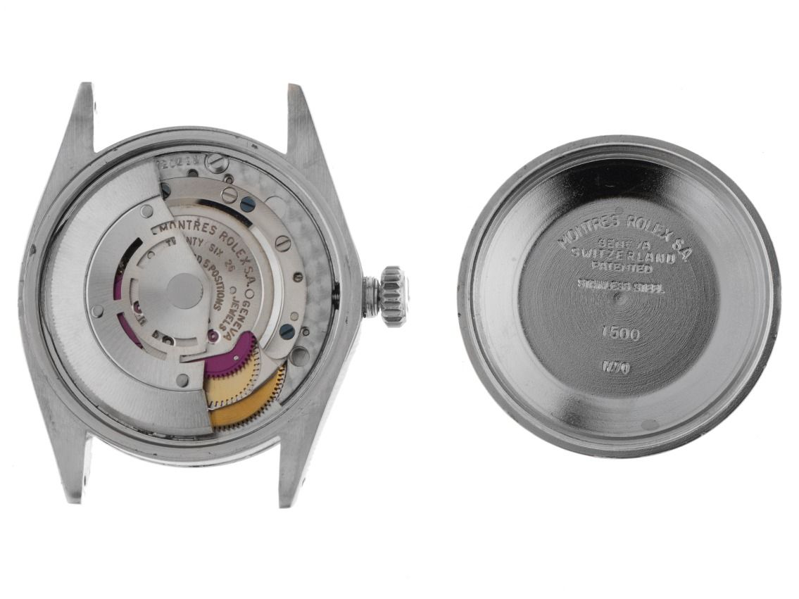 Behuizing van gepolijst en satijnstaal, behuizingsdiameter zonder kroon 34mm, behuizingshoogte 12,7mm. Lünette van glad en gepolijst staal. Armband Oyster van gevouwen en satijnstaal, vouwsluiting van staal met fabrikantlogo. Wijzerplaat rhodium grijs met opgezette witgouden indexen en witgouden wijzers. Uurwerk automatisch, chronometer, Rolex manufaktuurkaliber 1570 met 26 edelstenen. Weergave van uur, minuut en seconde via centrale wijzers met seconde-stop voor nauwkeurige tijdinstelling, datumaanduiding met snelle aanpassing onder vergrootglas bij 3 uur, open 6/9 (open 6 en 9 in de datumaanduiding). Plexiglas. Kroon met schroefdraad en fabrikantlogo. Achterkant van staal met schroefdraad. Gewicht van het horloge inclusief armband 71g, lengte van de armband inclusief behuizing 175mm. Referentienummer: 1500, behuizingsnummer: 2546XXX, bouwjaar: 1970, ID: P201762101125H-6500, artikelnummer: 10000083465. Met gangcontrole en volledige uiterlijke opfrissing van december 2025. Originele Rolex doos en leren etui, vertaalboekje en uittreksel van het Watchregister van december 2025, The Watch Register certificaat / zonder vermelding (Internationale database voor verloren of gestolen horloges). Superscherpe aanbieding, zeer zeldzaam verzamelobject. Zeer goede staat. Leveringstijd direct.