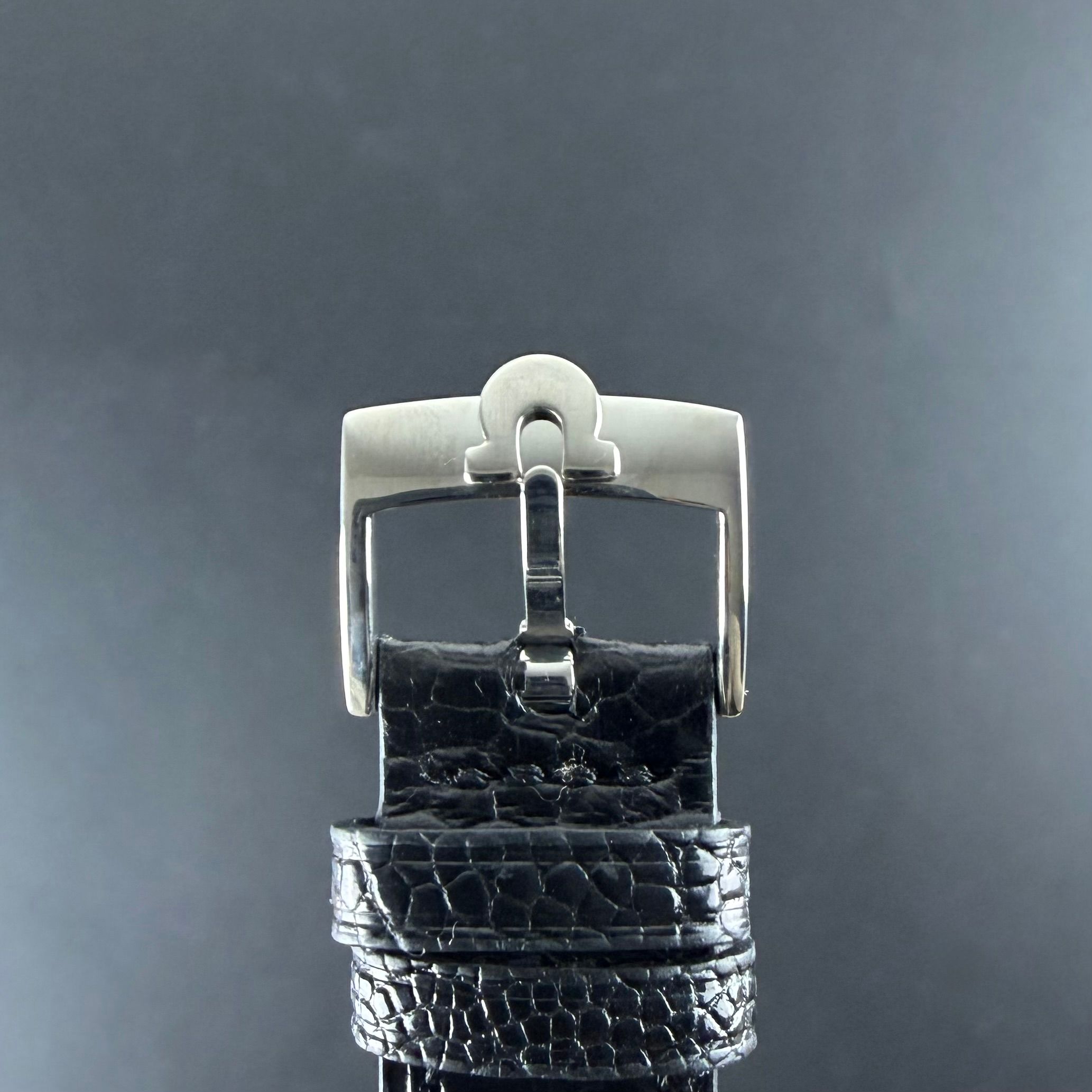 Strap: A grade III black calf leather strap with a crocodile grain and light glossy finish. (Fits a 12 to 20cm wrist)