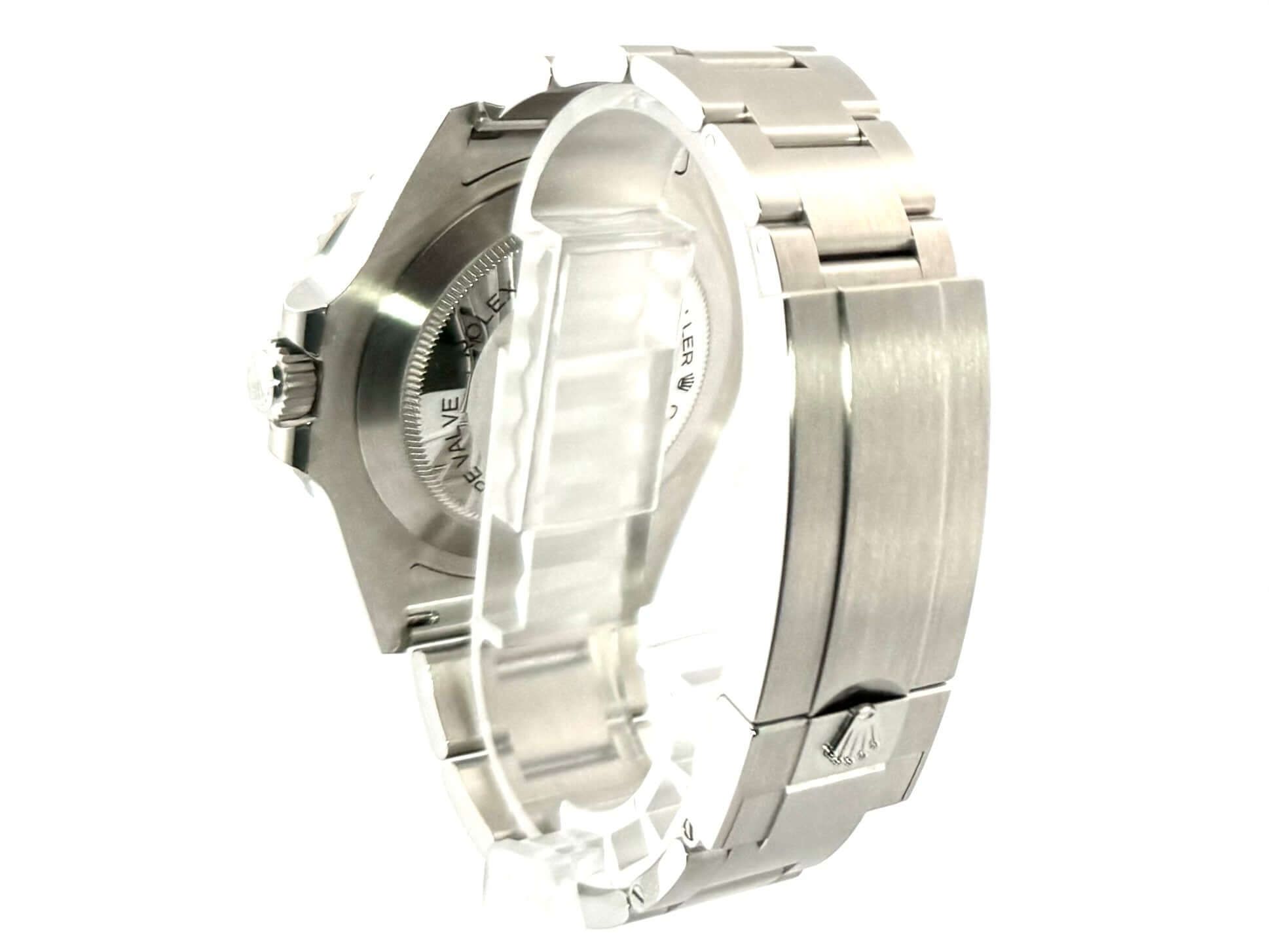 Kast gemaakt van gepolijst en gesatineerd roestvrij staal, kastdiameter 43 mm, roestvrijstalen bezel met zwarte keramische inleg, 60-minuten schaal en luminescente stip, unidirectioneel draaibaar, Oyster roestvrijstalen armband gesatineerd met veiligheidsvouwsluiting, zwarte wijzerplaat met aangebrachte luminescente indexen, luminescente wijzers, automatische beweging, Rolex kaliber 3235, 31 juwelen, trillingen 28.800 A/h, chronometer, datumaanduiding op 3 uur, saffierglas, heliumventiel op 9 uur positie, geschroefde kroon met zijbescherming, geschroefde en gegraveerde roestvrijstalen achterkant, waterbestendig tot 122 bar.