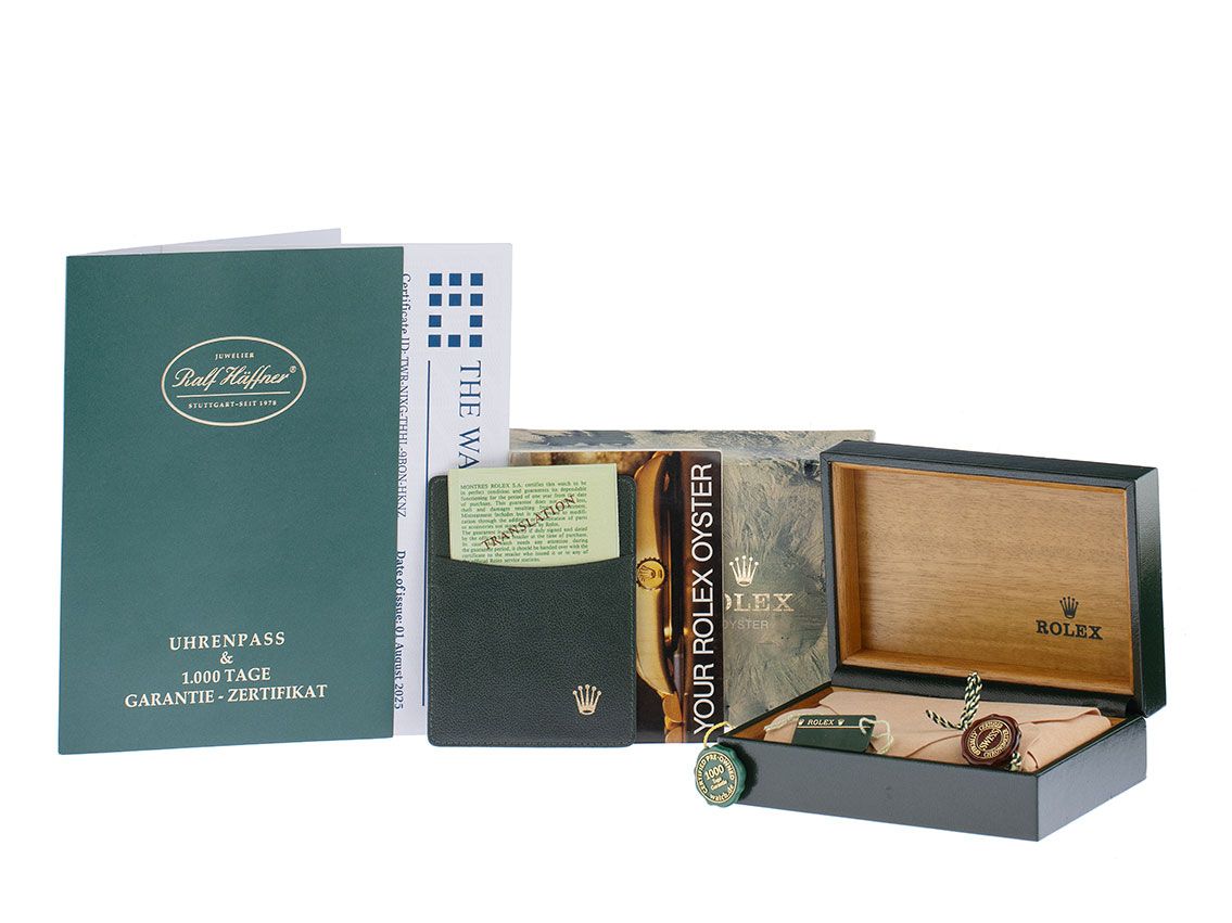 Inklusive certified pre owned Siegel / Uhrenpass mit einem Farbbild, der genauen Beschreibung sowie dem Wiederbeschaffungswert der Uhr über 6200,-€ und 1000 Tage Garantie ab Kaufdatum.