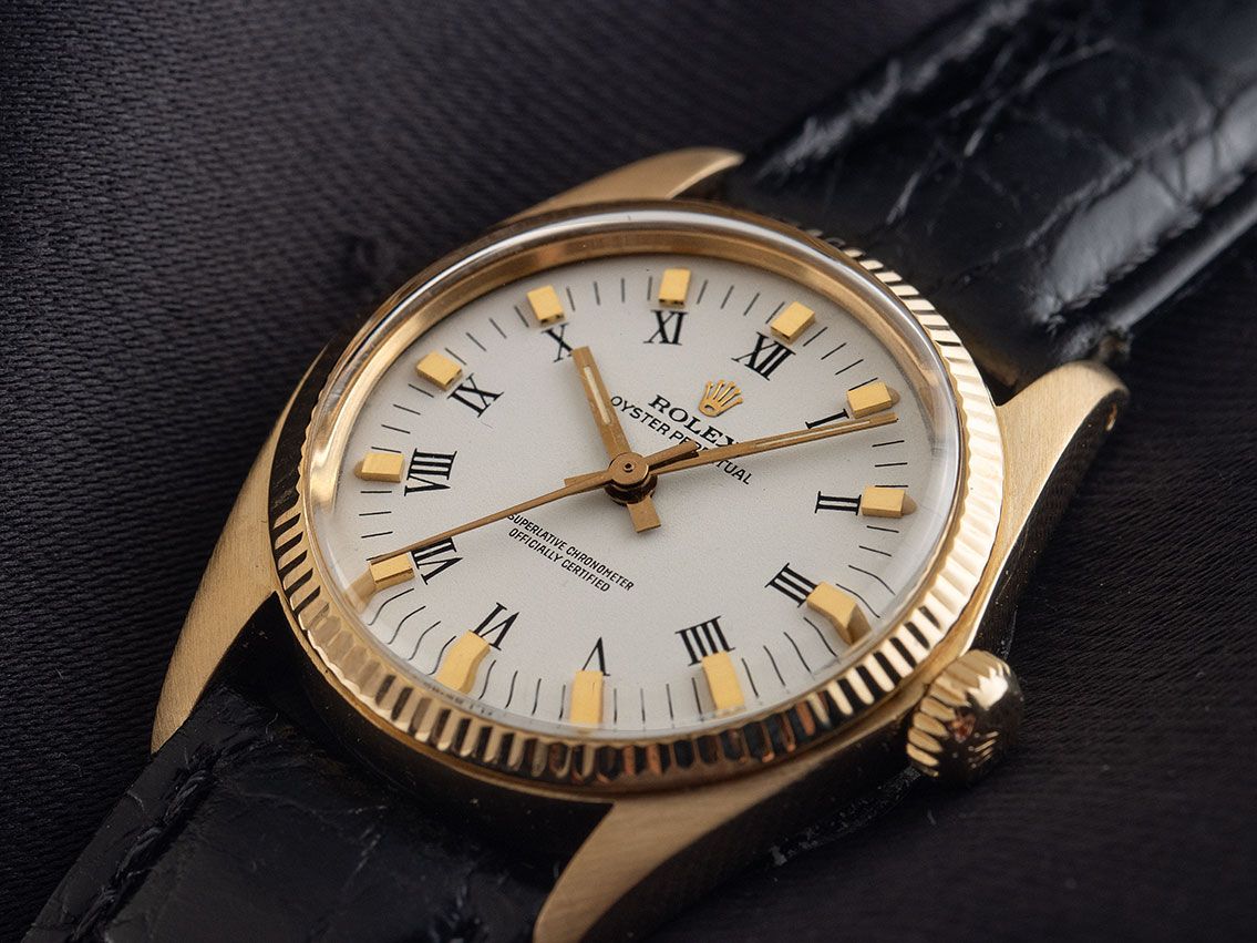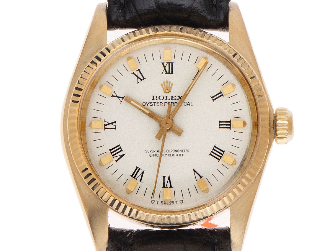 Rolex Oyster Perpetual 18kt Gelbgold Automatik Armband Leder