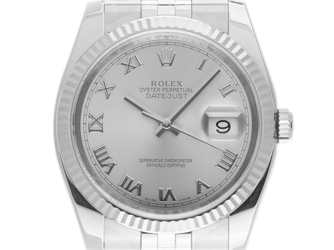 Gehäuse Edelstahl poliert und satiniert, Gehäusedurchmesser ohne Krone 36mm, Gehäusehöhe 11,6mm. Lünette 18kt Weißgold geriffelt und poliert. Armband Jubilé Edelstahl poliert und satiniert, verdeckte Rolex Crownclasp-Faltschließe Edelstahl mit Hersteller-Logo. Zifferblatt silberfarben mit aufgesetzten weißgoldenen römischen Ziffern und weißgoldenen Zeigern. Uhrwerk Automatik, Chronometer, Rolex Manufakturkaliber 3135 mit 31 Edelsteinen. Anzeige von Stunde, Minute und Sekunde über Zeiger aus der Mitte mit Sekundenstopp zur sekundengenauen Einstellung der Uhrzeit, Datumsanzeige mit Schnellverstellung unter Glaslupe bei 3 Uhr. Saphirglas kratzfest. Krone verschraubbar mit Hersteller-Logo. Boden Edelstahl verschraubt. Gewicht der Uhr inklusive Armband 111g, Länge des Armbandes inklusive Gehäuse 160mm. Referenznummer: 116234, Gehäusenummer: G864XXX, Baujahr: 2010, ID: P1656158001025H-12500, Artikelnummer: 10000082542. Mit Gangkontrolle und kompletter äußerlicher Aufarbeitung von Oktober 2025. Original Rolex Box und Garantie Papiere von April 2013, LC 888 / Hong Kong sowie Beschreibung, Ledermäppchen, Rolex Chronometer-Siegel und Watchregister Auszug von Oktober 2025, The Watch Register Zertifikat / ohne Eintrag (Internationale Datenbank für verlorene oder gestohlene Uhren), Full Set. Kapitalanlage mit Wertsteigerungspotential. Wie Neu. Lieferzeit sofort.