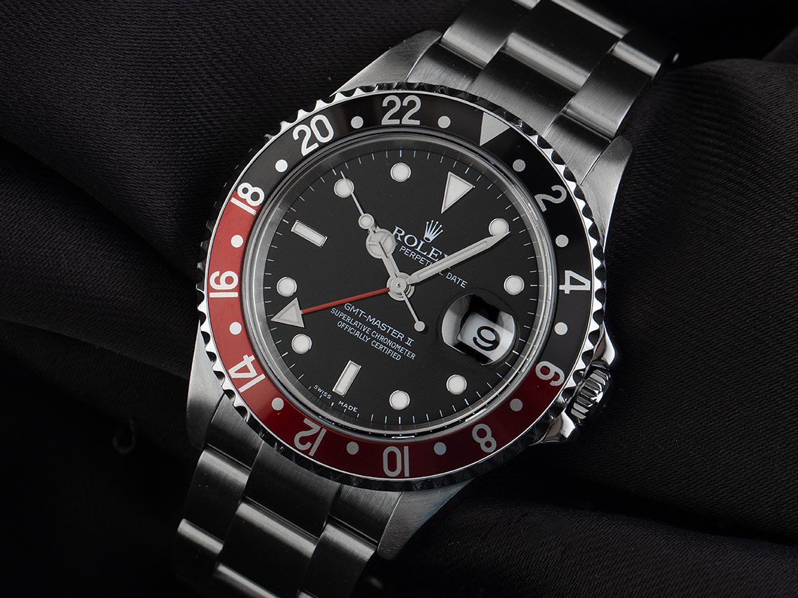 Rolex GMT Master II schwarz / rot Coke Stahl Automatik Armband Oyster
