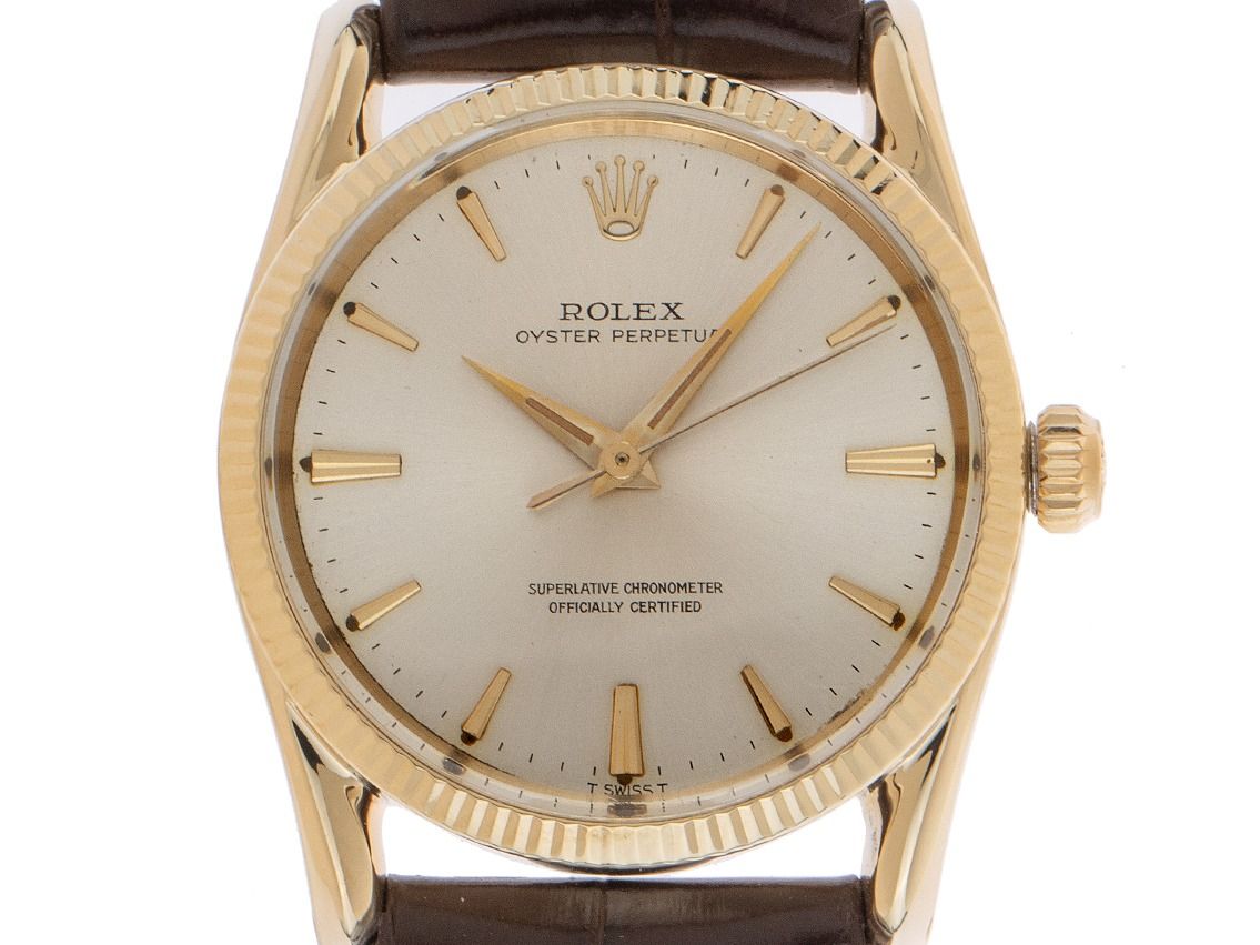 Rolex Rolex Oyster Perpetual 18kt Gelbgold Automatik Armband Krokoleder