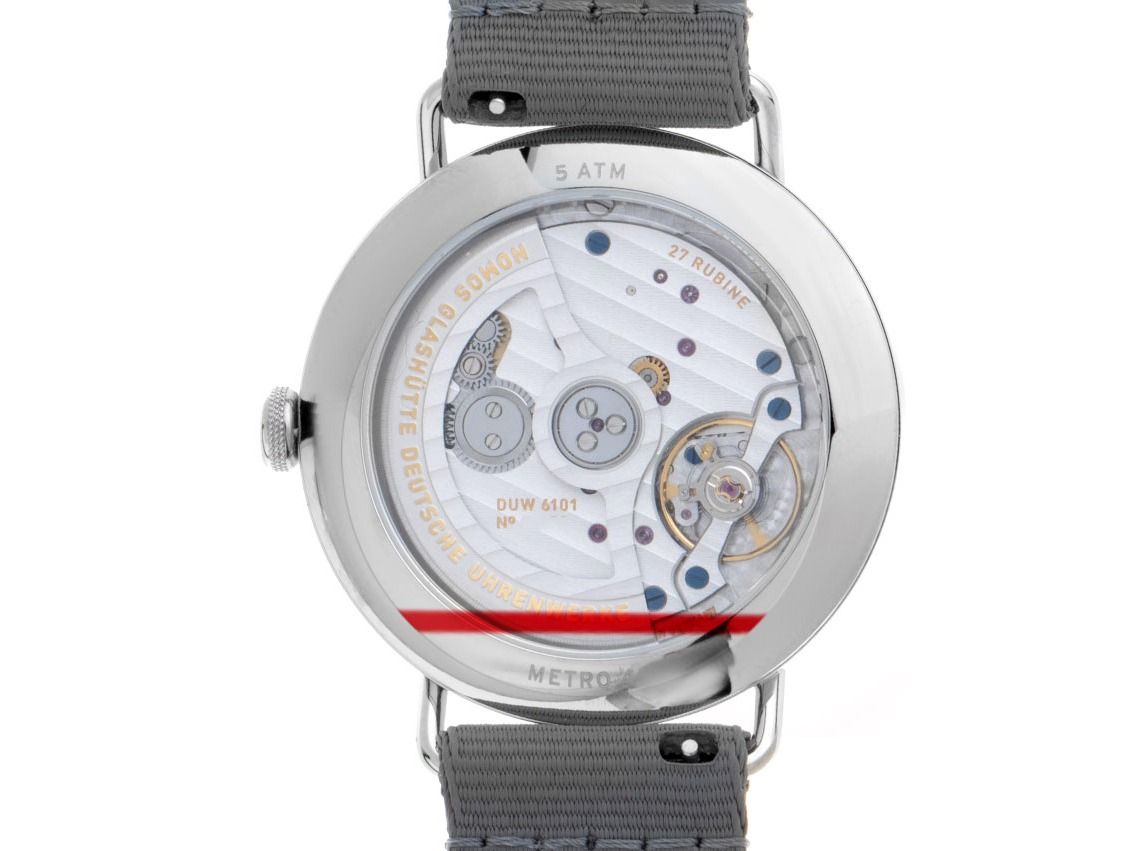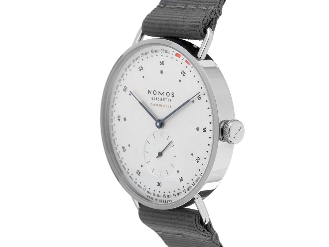 Nomos Glashütte Metro Neomatik Update Stahl Automatik Armband Textil Glasboden