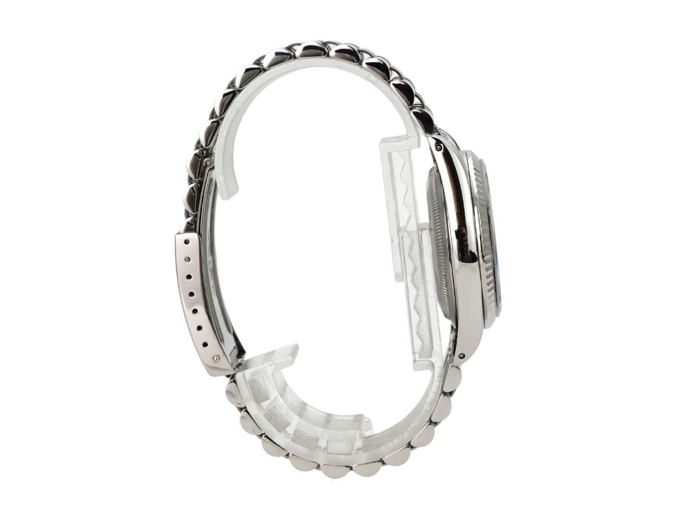 Behuizing gemaakt van gepolijst en satijn afgewerkt roestvrij staal, behuizingsdiameter 36 mm, behuizingshoogte 11,7 mm, 18 kt witgouden gefluteerde bezel, gepolijste en satijn afgewerkte Jubilee roestvrijstalen armband met vouwsluiting, blauwe wijzerplaat met aangebrachte diamanten, automatische beweging, Rolex 3135 met 31 juwelen, 28.800 A/h, datum, chronometer, saffierglas, schroefkroon, geschroefde roestvrijstalen achterdeksel, waterbestendig tot 10 bar.