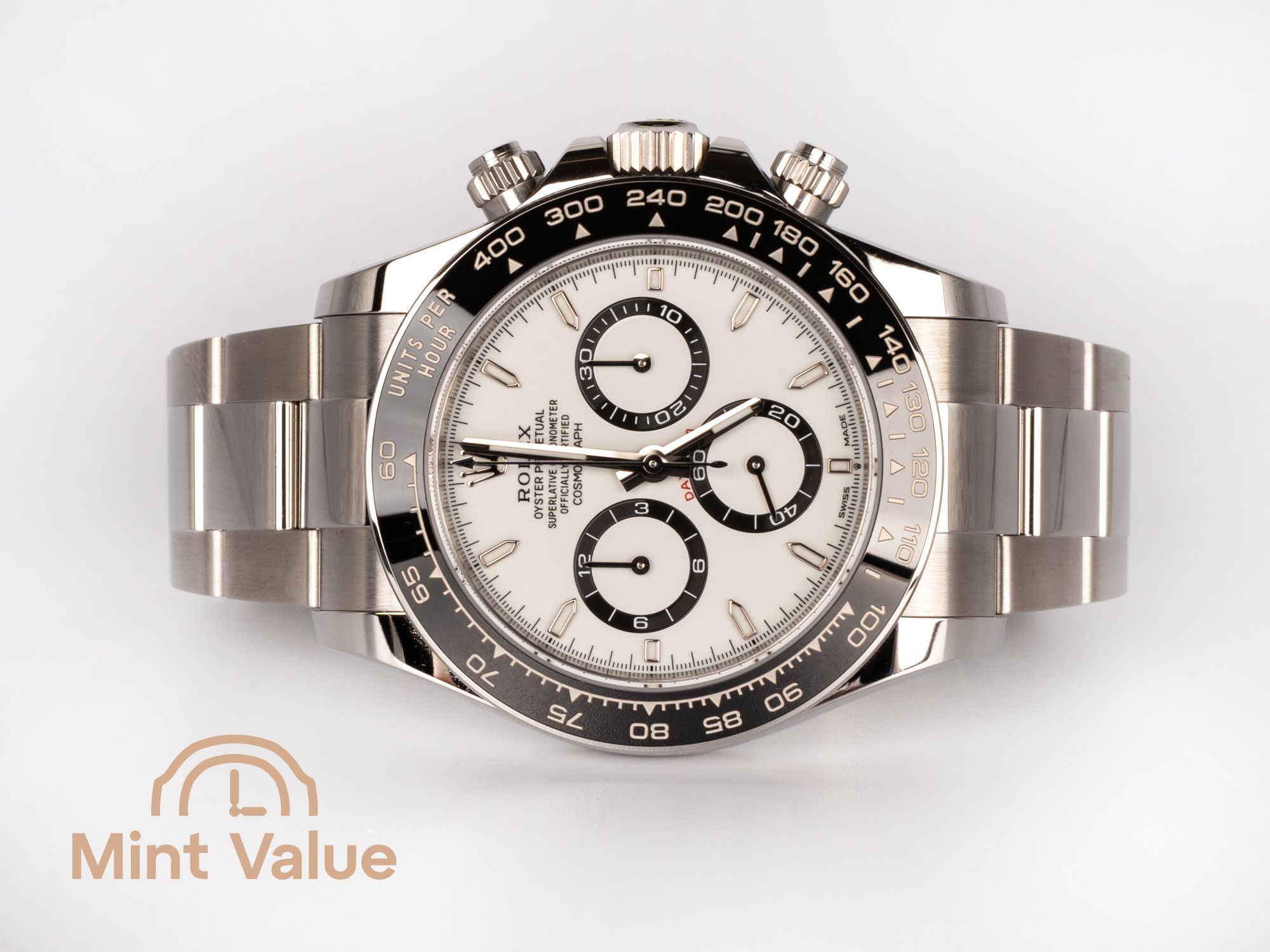 Rolex Cosmograph Daytona “Panda” Witte Wijzerplaat — Ref. 126500LN