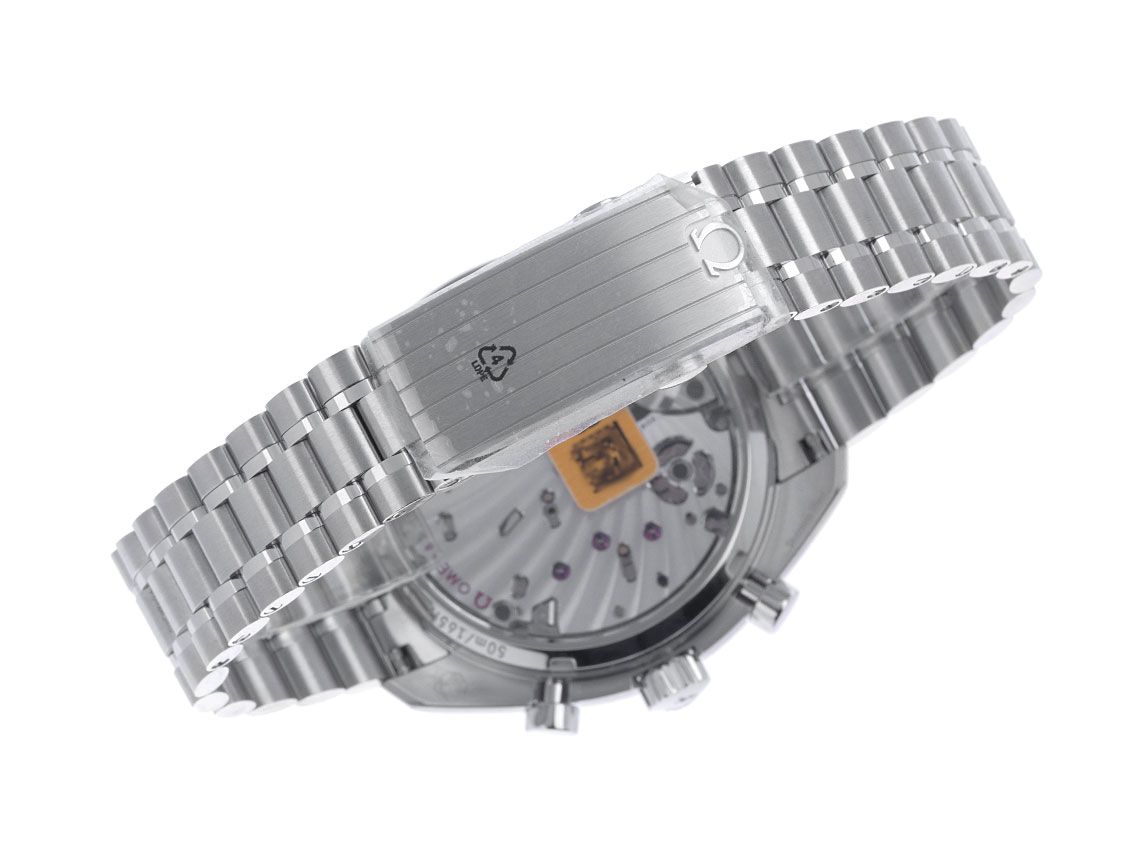 Polished en gesatineerde roestvrijstalen kast, kastdiameter zonder kroon 43mm, kasthoogte 13,3mm. Lunette van roestvrijstaal met blauw geanodiseerd aluminium inleg en tachymeterschaal. Polished en gesatineerd roestvrijstalen armband, veiligheidsvouwsluiting van roestvrijstaal met fabrikantlogo. Wijzerplaat blauw met zilverkleurige subdials, opgezette rhodium Arabische cijfers en rhodium wijzers, evenals een witte pulsmeterschaal en telemeterschaal. Uurwerk handopwind, chronograaf, chronometer met certificaat, Omega manufactuurkaliber 9908 met 44 edelstenen en Co-Axial escapement, gangreserve van ongeveer 60 uur. Weergave van uur en minuut via centrale wijzers, kleine seconde met seconde-stop voor nauwkeurige tijdinstelling bij 9 uur. Gewelfd en krasbestendig saffierglas, dubbelzijdig anti-reflecterend. Kroon verzonken in de kast met fabrikantlogo. Achterkant van roestvrijstaal, geschroefd en gegraveerd met saffierglas kijkvenster. Gewicht van het horloge inclusief armband 144g, lengte van de armband inclusief kast 195mm. Waterdicht tot 5 ATM. Referentienummer: 329.30.43.51.03.001, ID: ST2510127940325H-10300, artikelnummer: 10000079487. Originele Omega doos met omdoos en garantiepapieren van 2025, evenals beschrijving, Full Set. Ongebruikt. Leveringstijd direct.