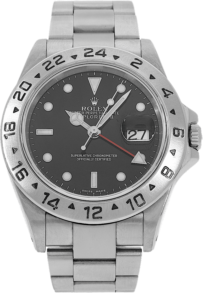 Rolex Explorer II, Reference: 16570, Gender: Male, Size: 40mm, Dial color: Black, Strap material: Stainless Steel, Movement: Automatic, Condition: Previously worn with some signs of usage. The movement is flawless and the case has been cleaned. watch tested to ensure full functionality. An inspection by our certified watchmakers guarantees its authenticity., Documents: Original papers, CHRONEXT Certificate