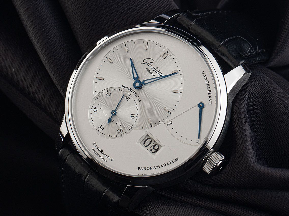 Glashütte Original PanoReserve Staal Handopwind Armband Krokoleder Vouwsluiting