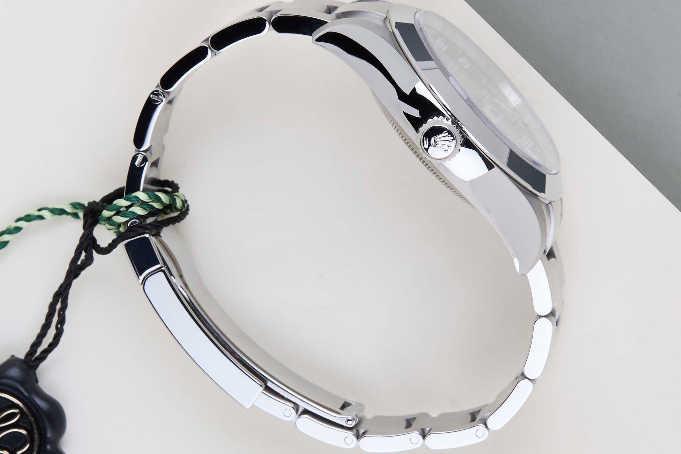 Full Set The Rolex Air King was first introduced in the 1940s. It is named after the British Royal Air Force, which used Rolex watches as standard issue for its pilots during World War II.This Rolex Air King was sold for the first time in October 2020. This Air King is made of stainless steel and is fitted with an Oyster Bracelet, which is equipped with the Easylink. This extension, allows the wearer to either extend or shorten the bracelet by 5 millimetres, improving the wearability and usability of the watch.This Stunning Rolex Air-King is in a mint condition and comes with the original Rolex Warranty Card and Box. Furthermore, the watch has been checked by our watchmaker, and therefore it comes with One Year of Steiner Warranty.