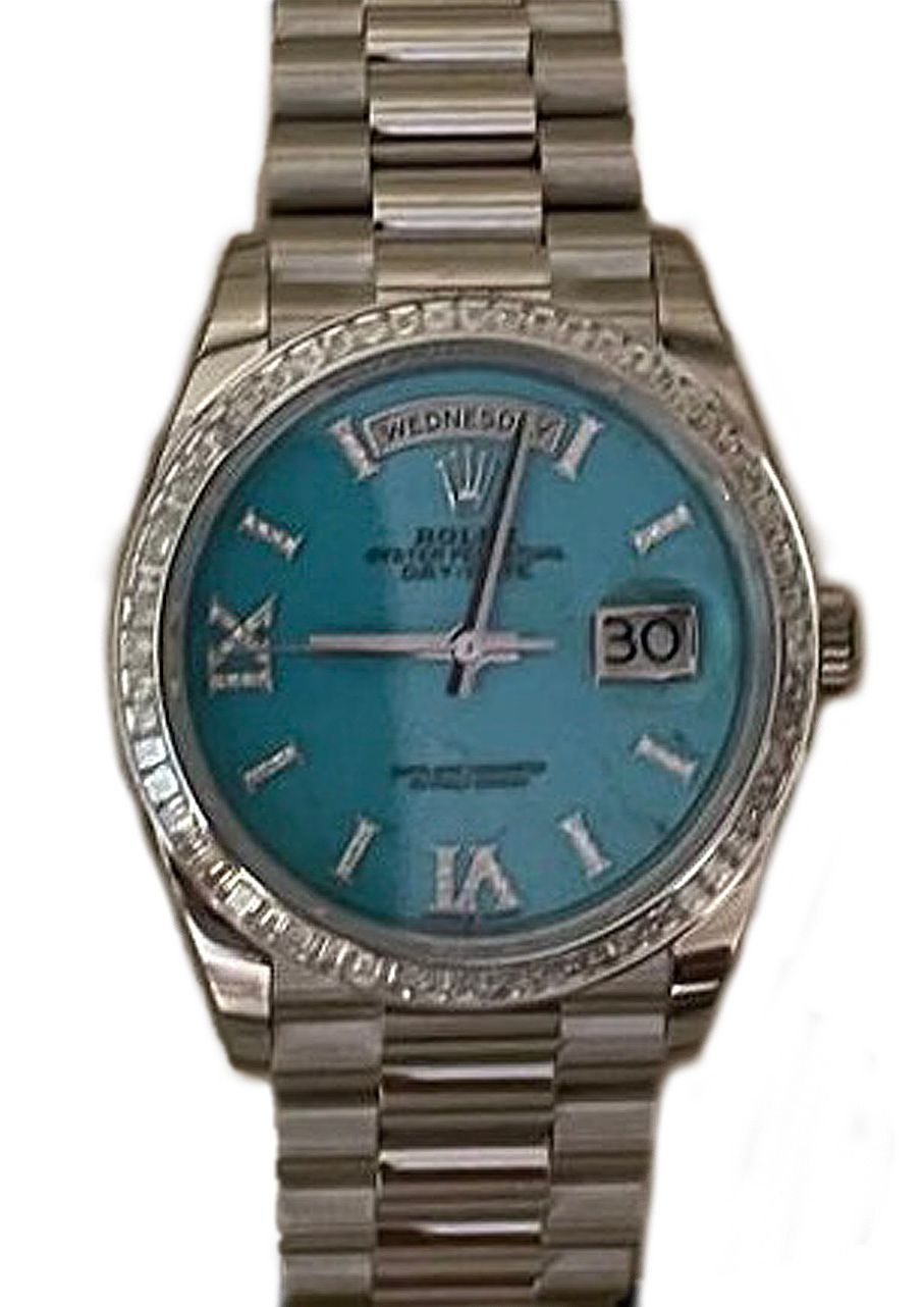 Rolex 128396TBR - Day-Date 36 Platinum - Türkis Diamant President
