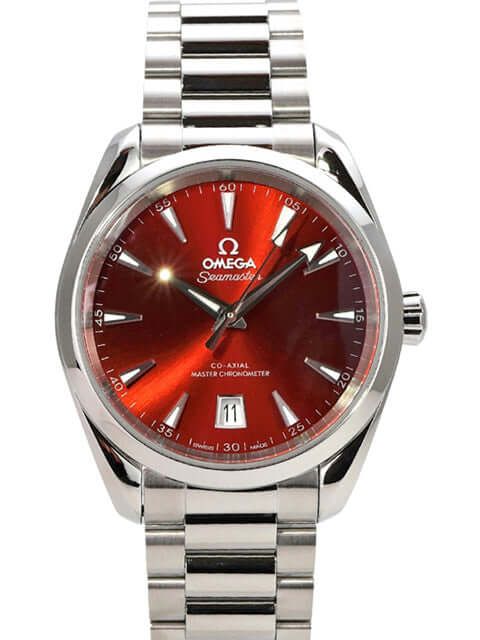 Omega Seamaster Aqua Terra 38 Shades 220.10.38.20.13.003Case made of polished and satin-finished stainless steel, case diameter 38 mm, bezel made of smooth and polished stainless steel, stainless steel bracelet polished and satin-finished, red dial with indices, hands with luminous tips, automatic, caliber Omega 8800, Co-Axial escapement, power reserve approx. 55 hours, Master Chronometer, date display, sapphire crystal, screw-down crown, stainless steel case back screwed and engraved, sapphire crystal case back, water-resistant up to 15 bar.