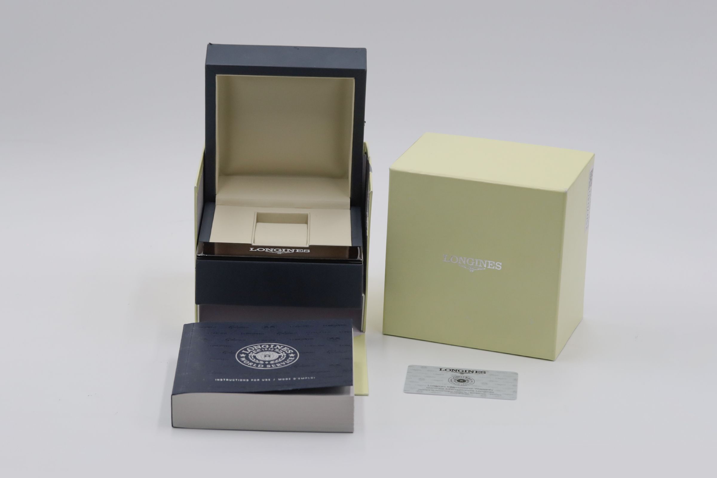Accessories: Original Longines box as pictured, Original papers as pictured, Booklets as pictured